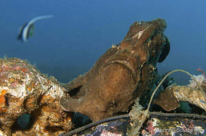 Le crabe rose porte un bien joli nom en anglais, mais en français c’est un bête crabe d’alcyonaire (corail mou). Le petit poisson-coffre à cornes est effectivement surnommé “poisson-vache”. Quant au poisson-crapaud, c’est en fait un “antennaire” en bon français. Mais je préfère leur donner des noms imagés, souvent adaptés de l’anglais. J’adoooooore tous ces noms bizarres de poissons…
