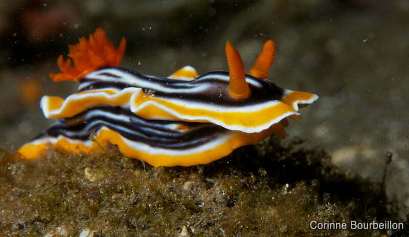 On y trouve toutes les curiosités espérées : poisson-feuille, poisson-fantôme, crabe orang-outan, poisson-crapaud et bien évidemment une jolie collection de nudibranches, ces petites limaces sous-marines colorées, qui fascinent les photographes sub…