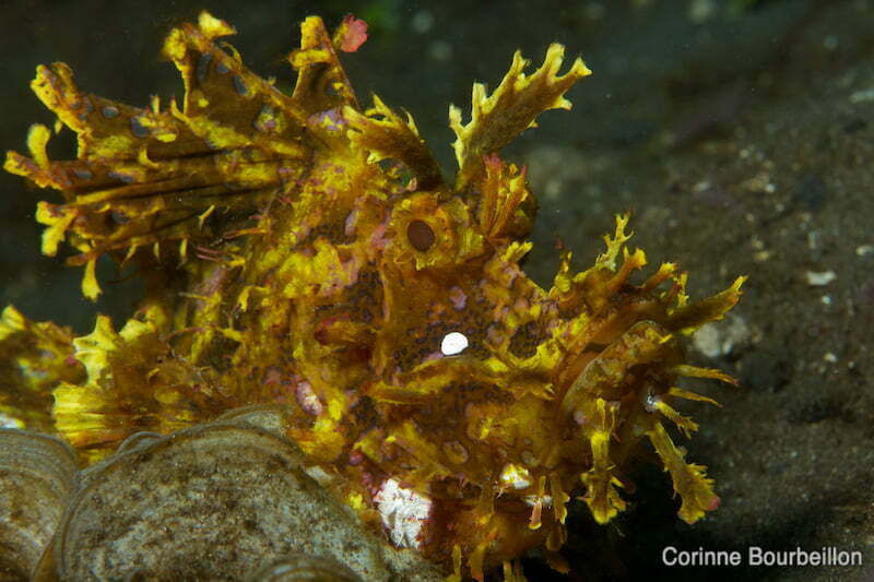 Rhinopias. Alor, Indonésie. Juillet 2012.D’abord un magnifique rhinopias jaune – ce drôle de poisson dont la gueule rappelle vaguement le profil d’un rhinocéros. N’est-il pas magnifique ? Vraiment, j’adooore ce poisson !!!