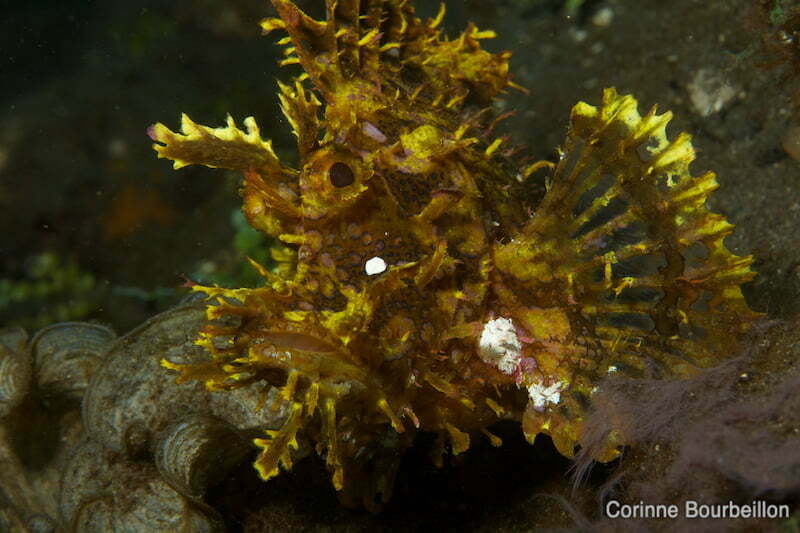La rencontre avec un rhinopias est rare, et précieuse donc. Les photographes de notre petit groupe, disciplinés, se succèdent devant la bête pour lui tirer le portrait. Coopératif, le rhinopias ne fait pas le timide et prend la pose sans paraître trop dérangé par nos flashs qui s’enchaînent… C’est vraiment un poisson sympa !