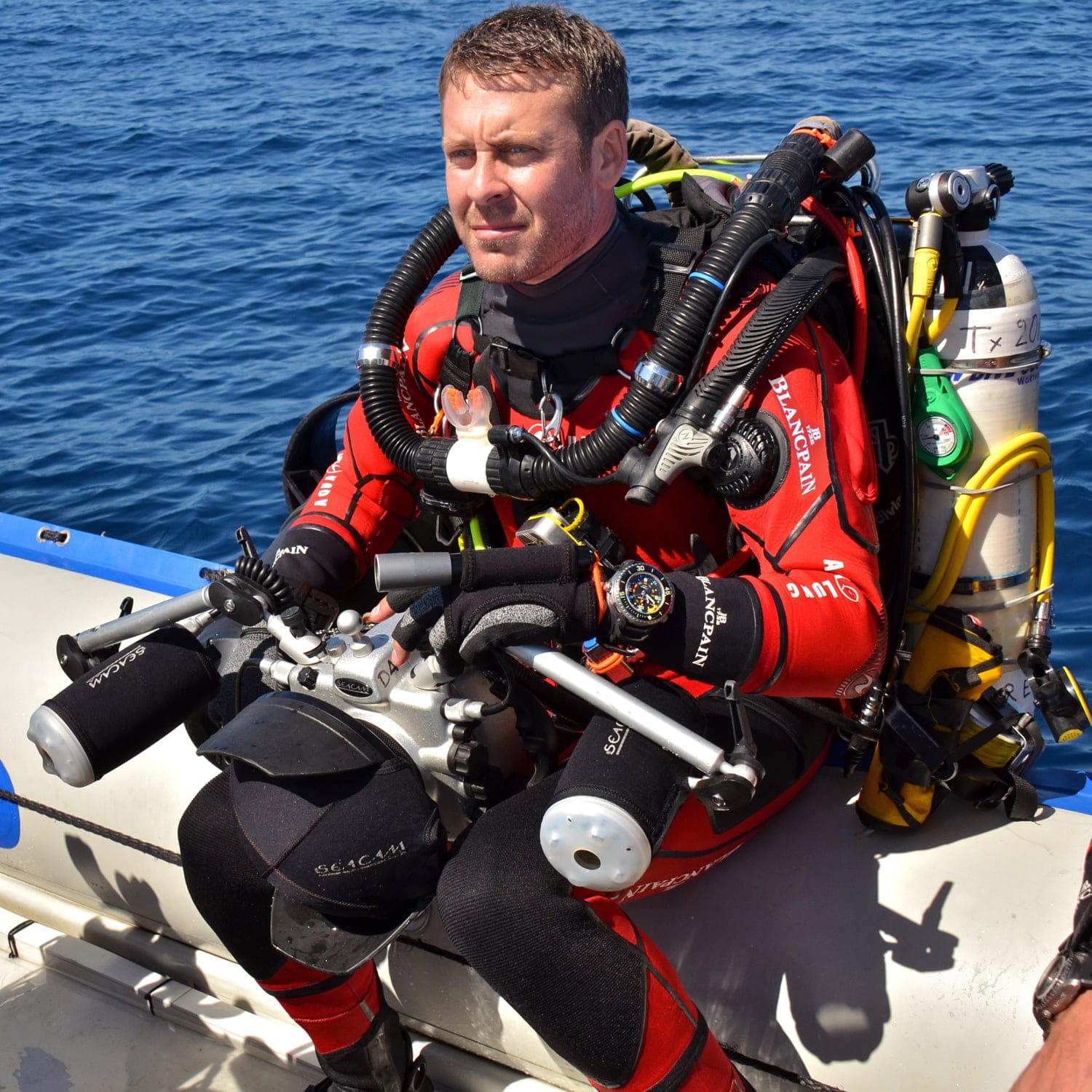 Biologiste et photographe, ce spécialiste des plongées profondes en recycleur parle de sa quête du cœlacanthe avec une passion communicative : “Ce sont les plongées les plus compliquées de ma vie, les plus engagées, les plus difficiles, m’a-t-il confié lors de l’interview que j’ai faite avec lui. Vous vivez 30 minutes incroyables avec l’animal, par 120-150 mètres de fond, et ces minutes-là valent une éternité…”