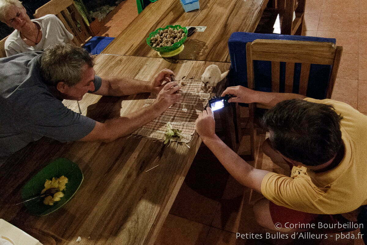 On prend tous des photos de la bestiole, sans mettre le flash, pour éviter de trop l’effaroucher. C’est la star de la soirée !