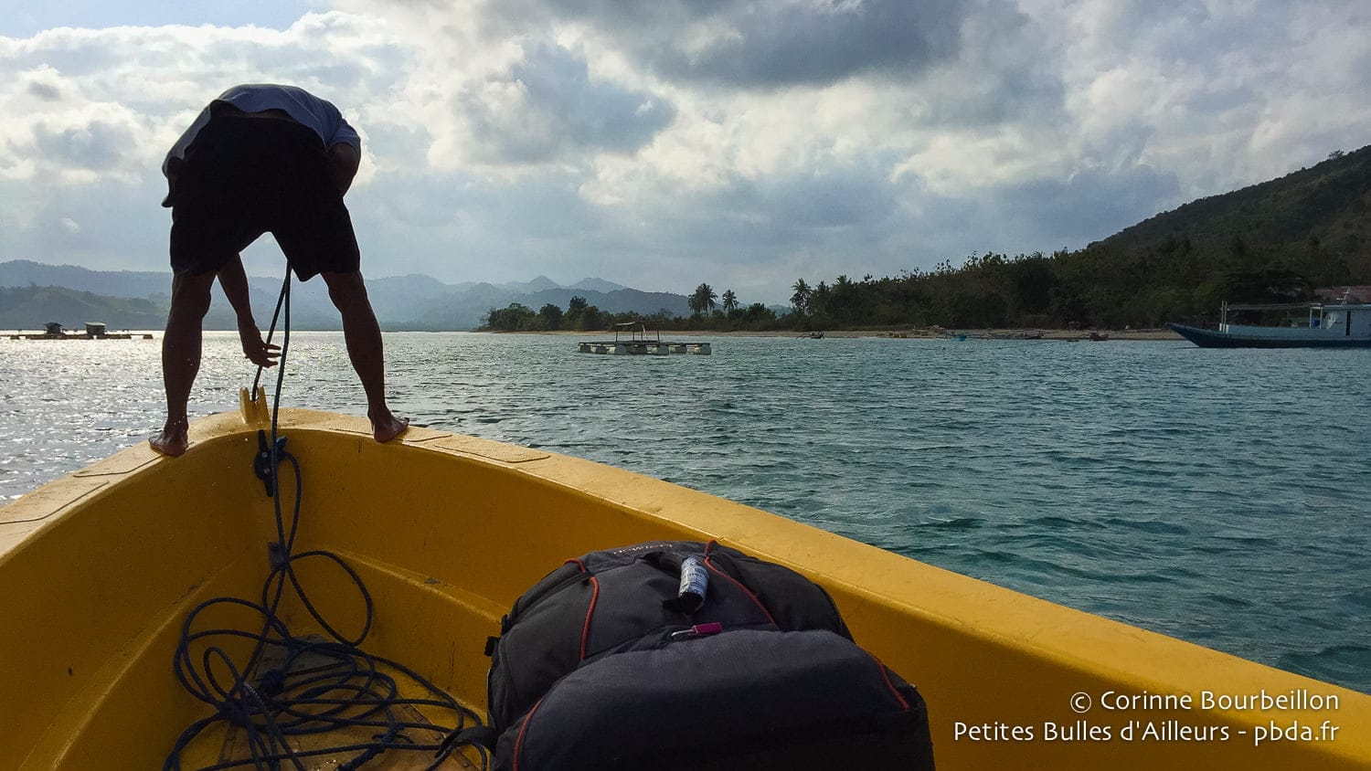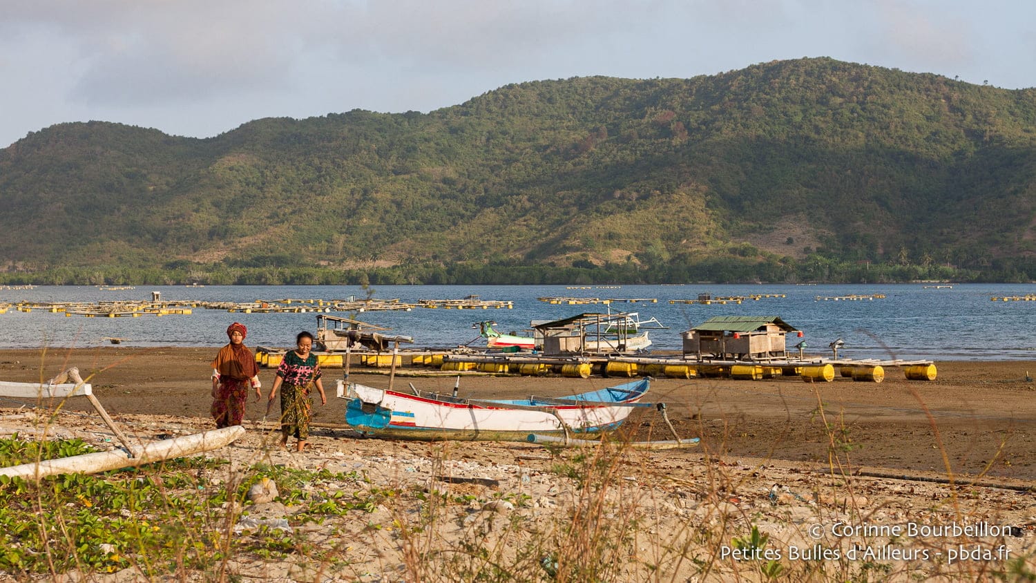 Je découvre un nouveau bout du monde, très paisible, très isolé. Voyageurs hyperactifs et touristes pressés, passez votre chemin… Il n’y a ici que le va-et-vient des marées et des bateaux de pêcheurs pour rythmer les journées. Enchâssée dans les collines de Lombok, cette petite mer intérieur incite à la lenteur, à la contemplation. Ça tombe bien, c’est mon passe-temps favori, entre deux plongées !