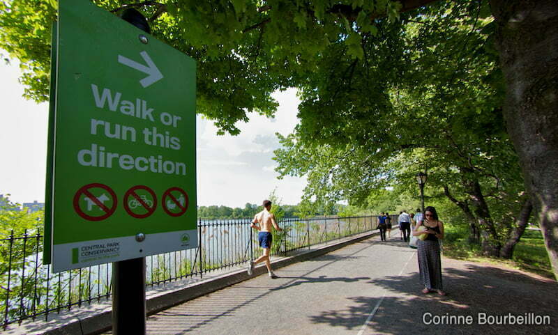 Sur le chemin qui fait le tour du Réservoir, il est interdit d’aller dans le mauvais sens : joggeurs et piétons doivent tourner dans le sens inverse des aiguilles d’une montre.