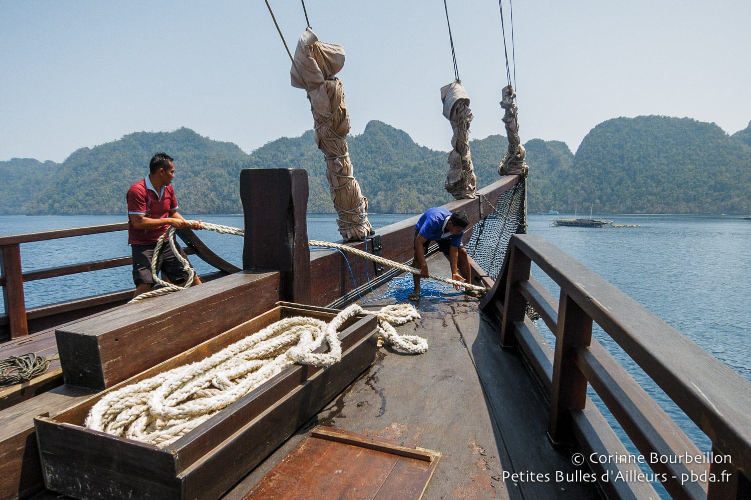 Ce premier soir, alors que nous venons de quitter le port d’Ambon, le doux balancement du Waow me berce.