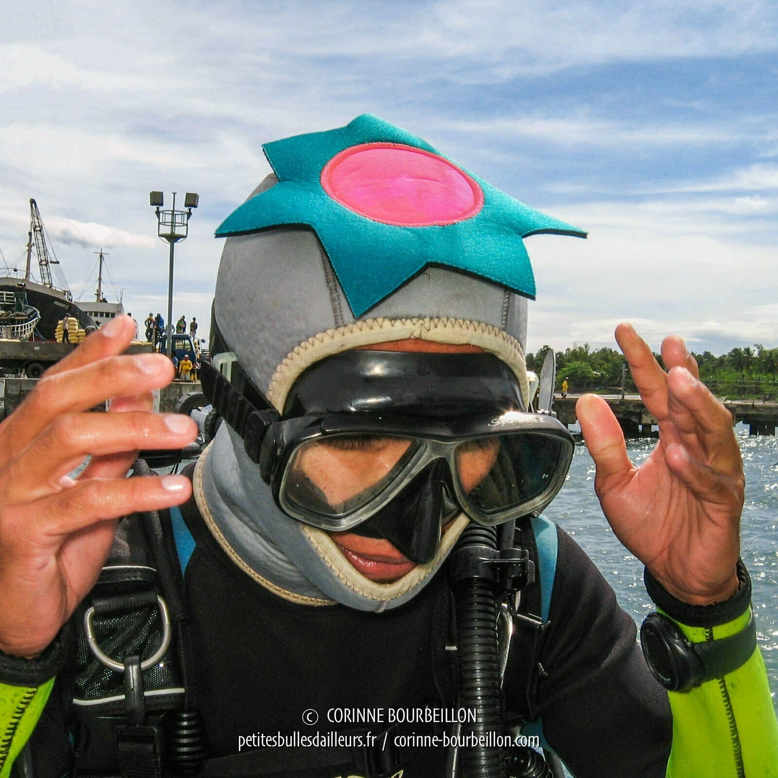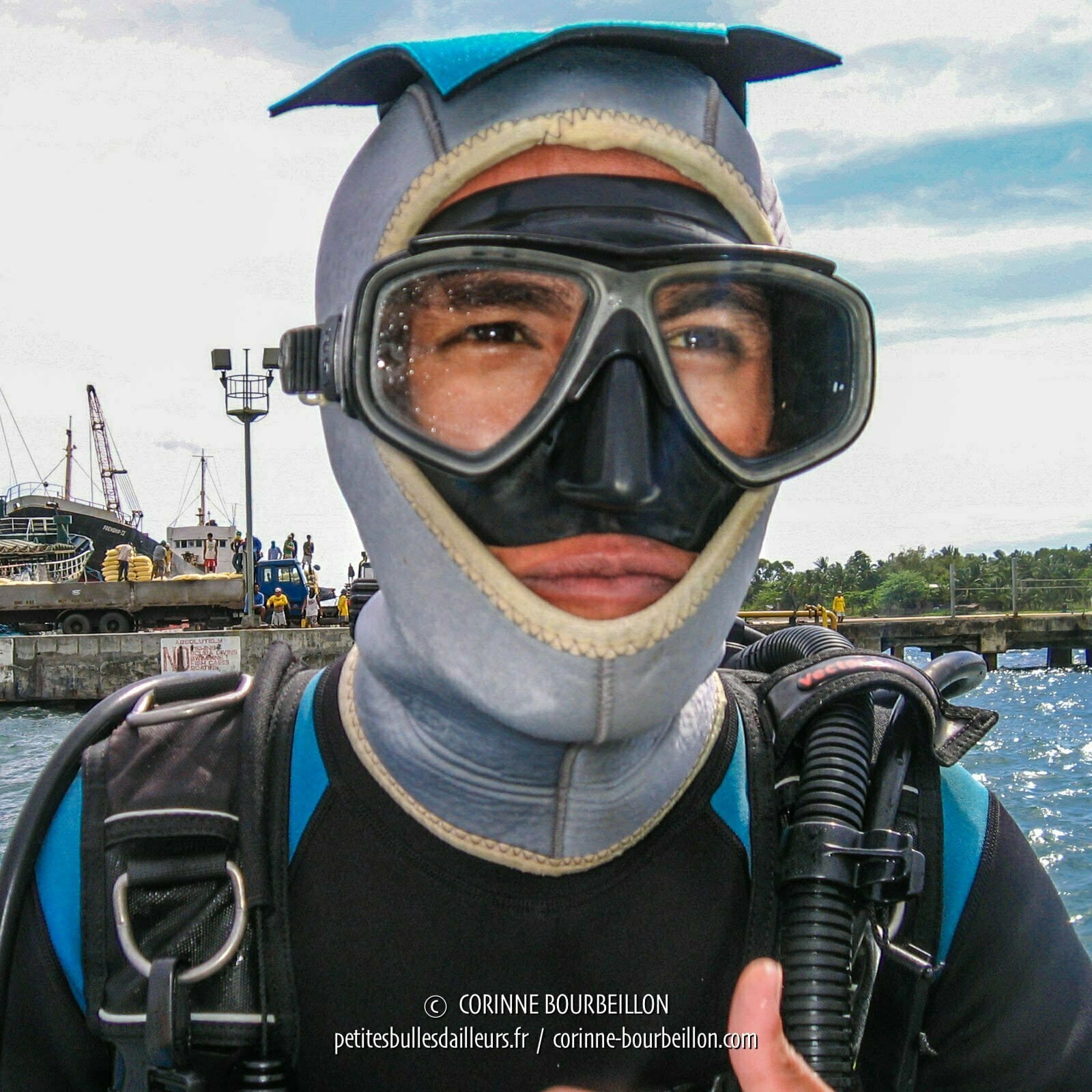 Le temps gris a persisté tout le temps de mon séjour à Dauin. Ce n’est pas très gênant pour les plongées, mais tout de même, un petit rayon de soleil est toujours le bienvenu pour se réchauffer quand on sort de l’eau.