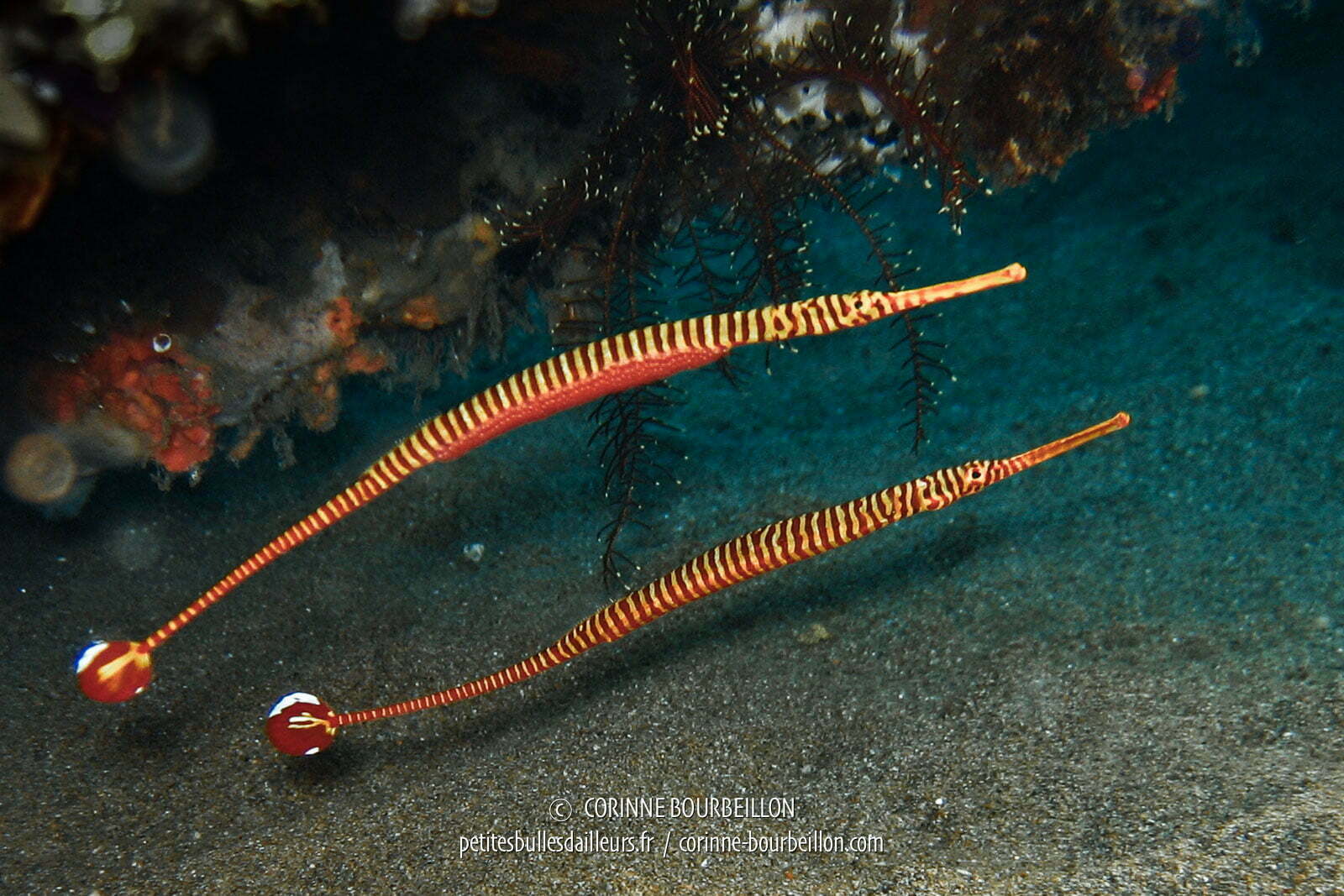 Dur de prendre des photos à cet endroit-là, avec le courant. Si on apercoit un beau nudi, pas sûr que le reste de la palanquée s’arrête aussi et patiente le temps de la mise au point… Mais il y a d’autres sites plus protégés du courant autour d’Apo, côté ouest, et là, on a le temps de se poser pour s’extasier devant quelques bestioles sympathiques et leur tirer le portrait.