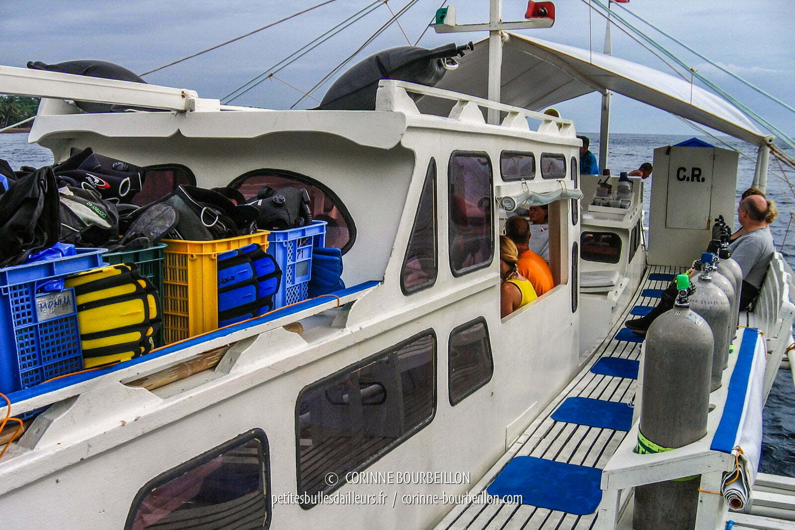 Le centre Sea Explorers avec lequel j’ai plongé est très bien organisé et équipé en grosses bancas (les bateaux traditionnels à balanciers) puissantes, qui tiennent la houle et permettent de gagner rapidement les différents sites.