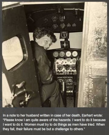 Mais il y a au moins une femme: Amelia Earhart (ci-contre), disparue en juillet 1937 dans le Pacifique aux commandes de son avion.