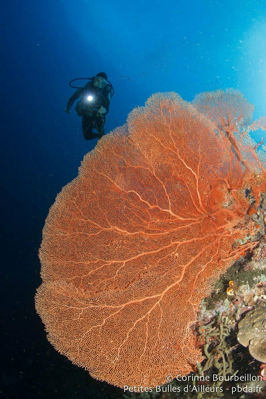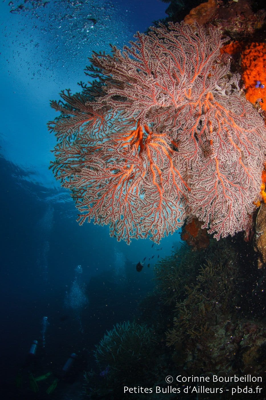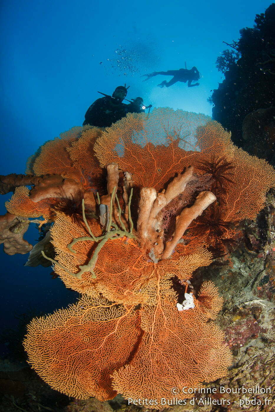 Le long du “wall” de Kakaban, il y a des gorgones géantes partout, des éponges barriques énormes…