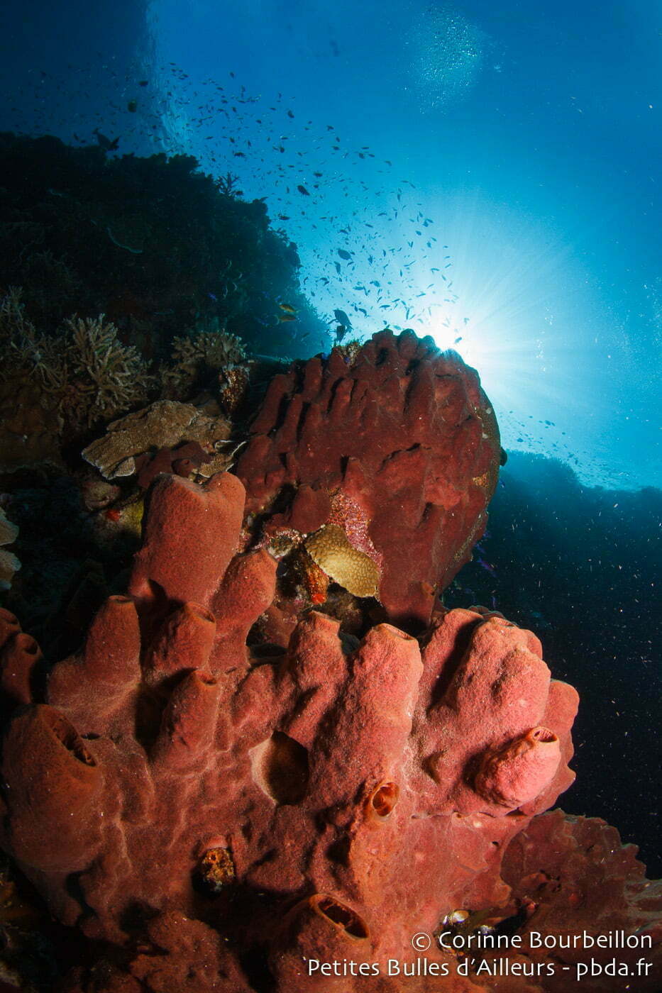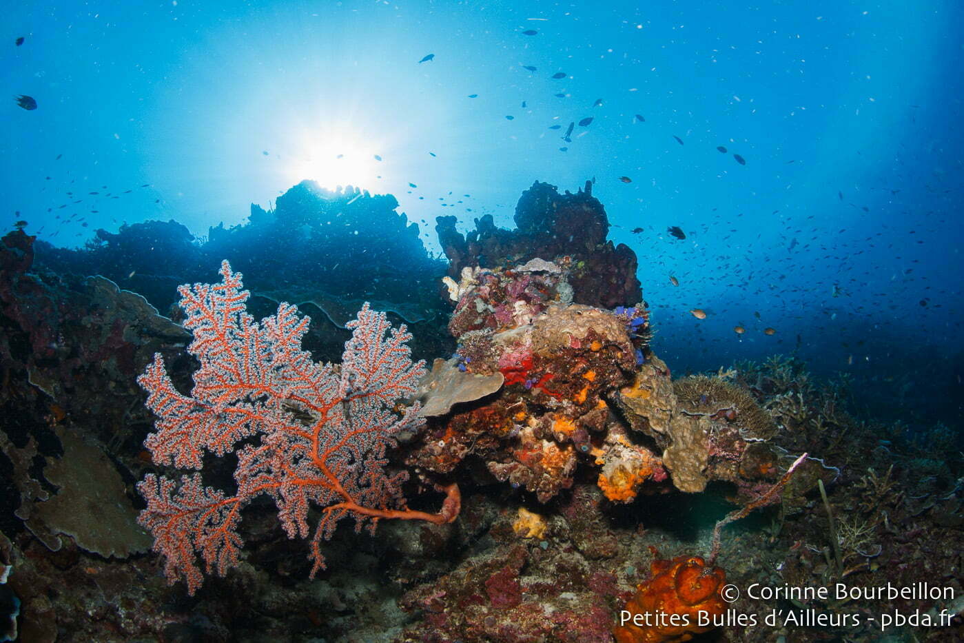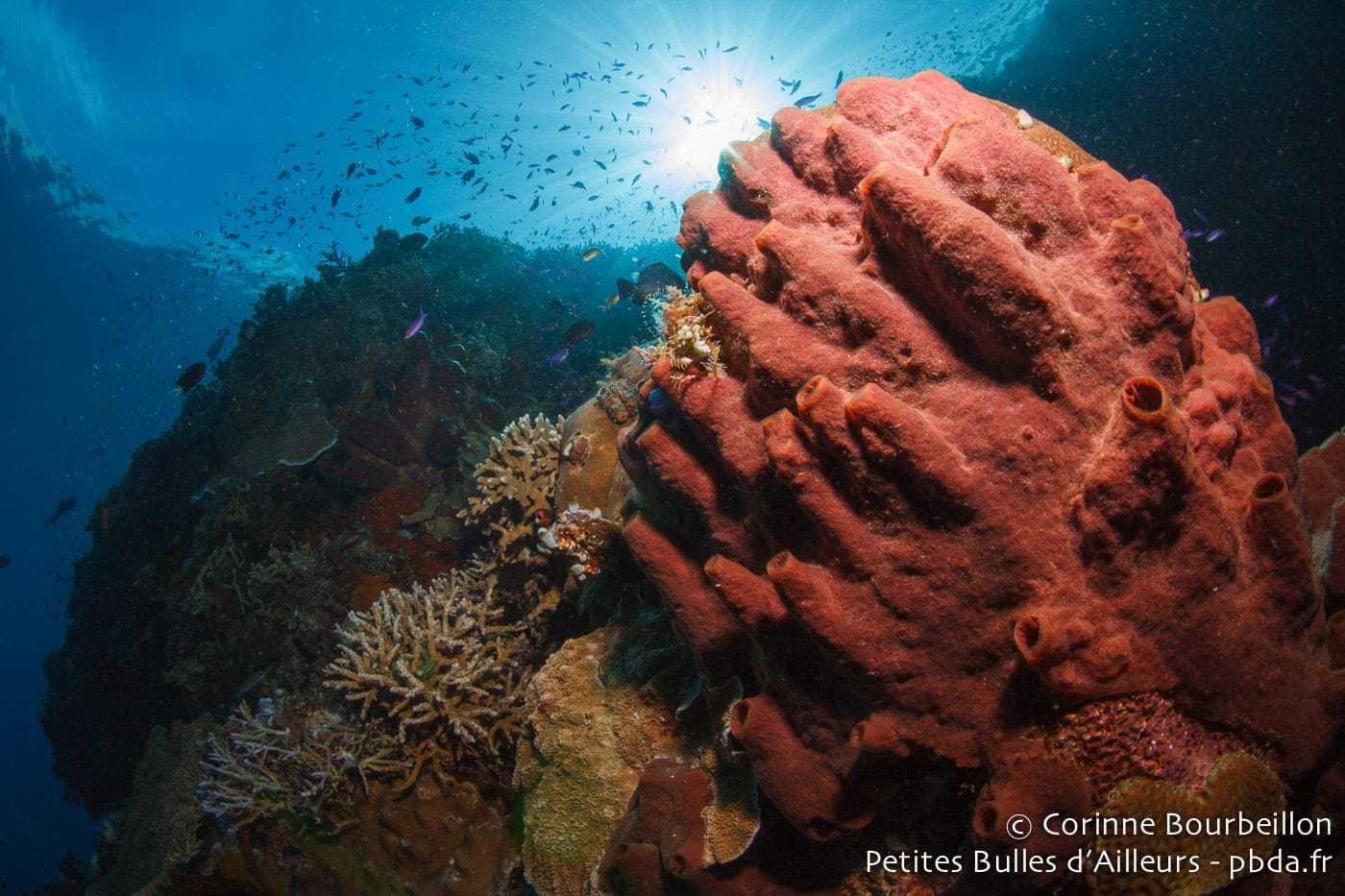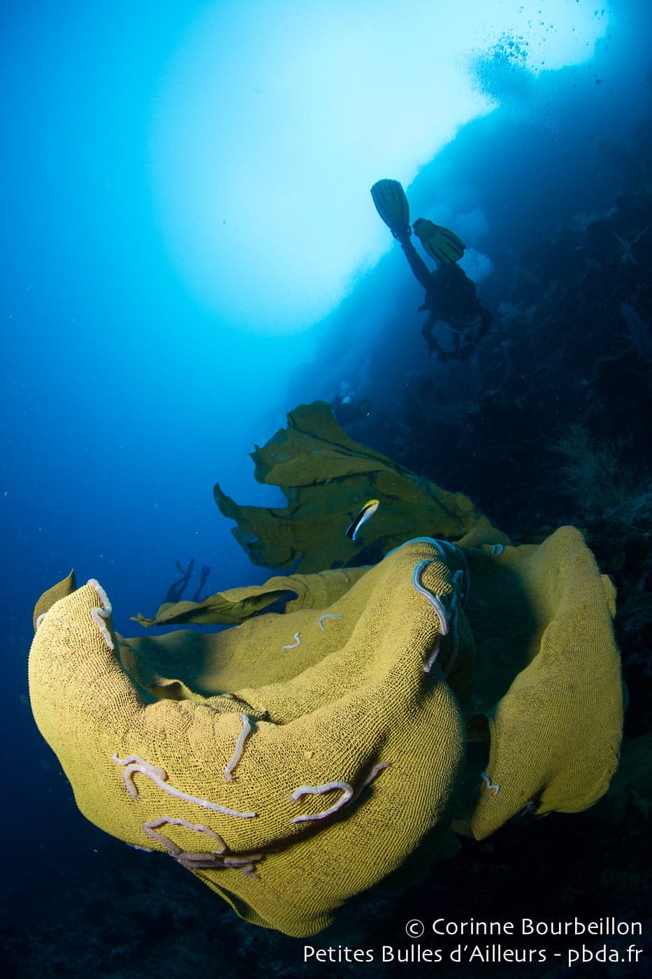 Le long du “wall” de Kakaban, il y a des gorgones géantes partout, des éponges barriques énormes…