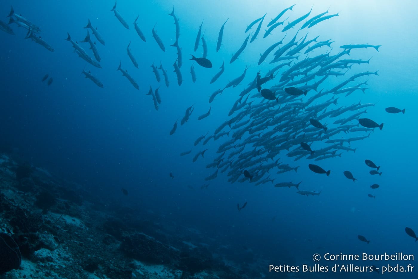 Merci encore pour ces articles toujours plus beaux les uns que les autres, les baracudas m’ont donné l’impression de dizaines de petits avions dans les airs !