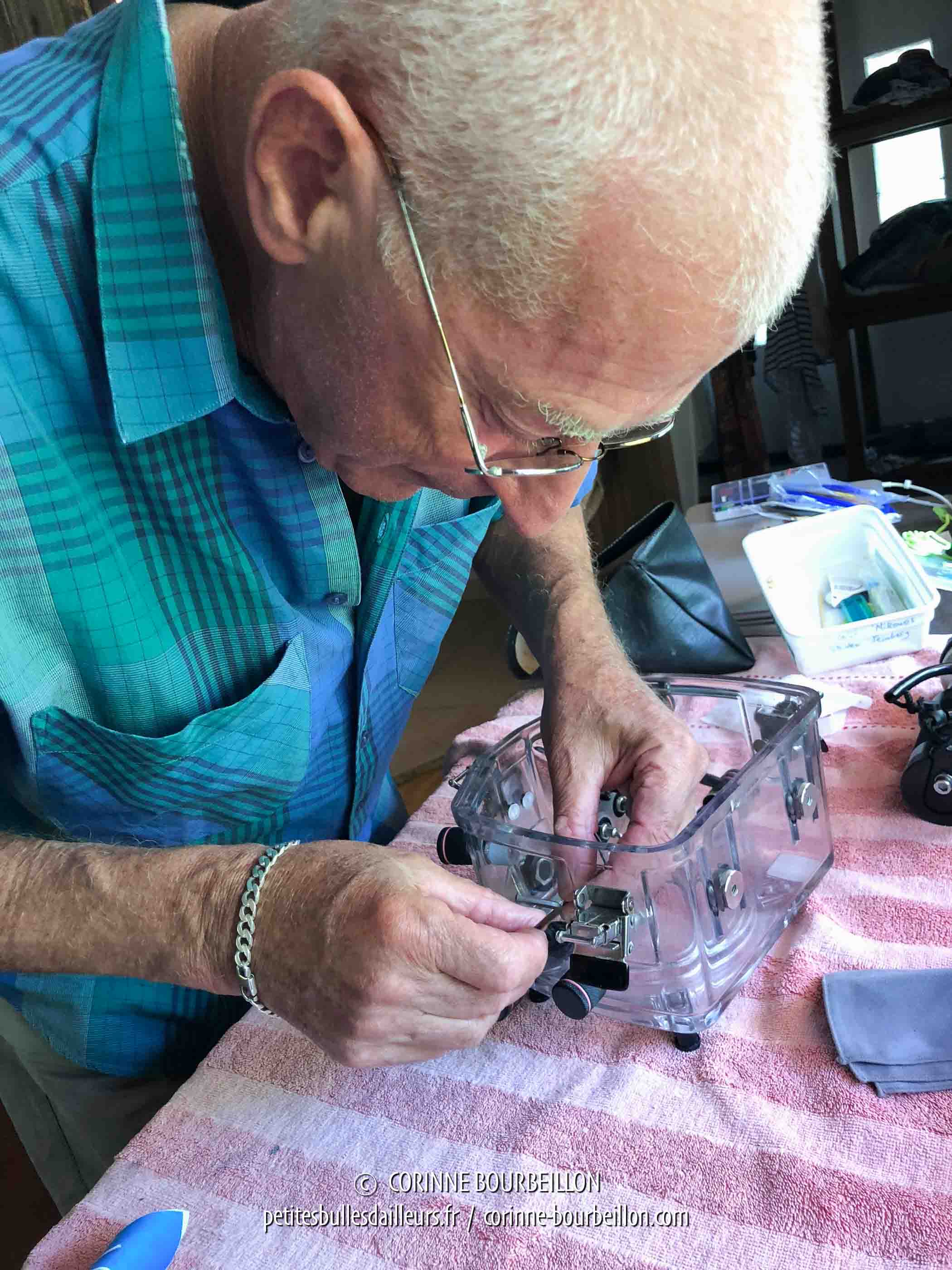 Back at the resort, the adorable Steven took care of cleaning and repairing the defective seal of the housing.