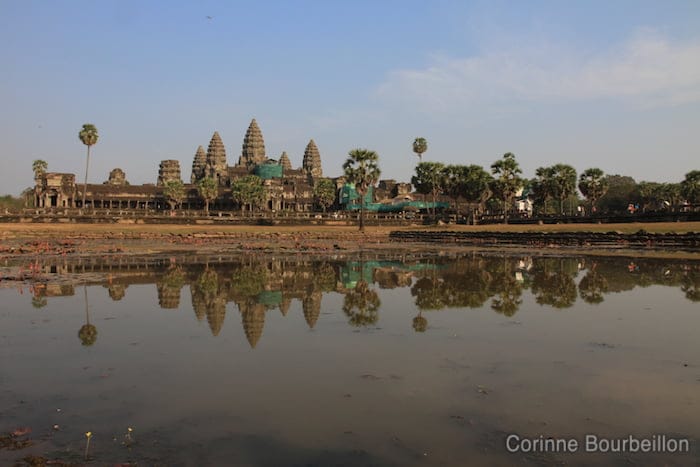 By the way, it's not a coincidence that everyone takes their pictures in the same place. Just in front of a poor little pond, a remnant of the old ponds, located on the left side. If we frame it well, we have the illusion that the temple is reflected in a lake. Hey, hey...