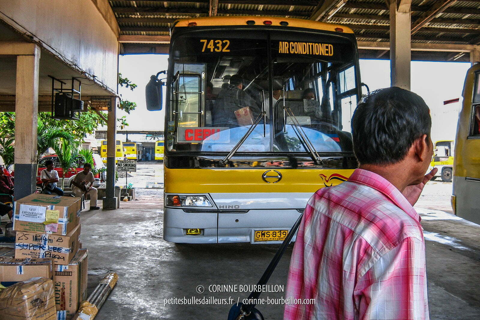 The return to Cebu City was easy. The yellow bus line Ceres connects the islands of Negros and CebuThe crossing is made by a kind of barge-ferry, at the point where the two coasts are closest.