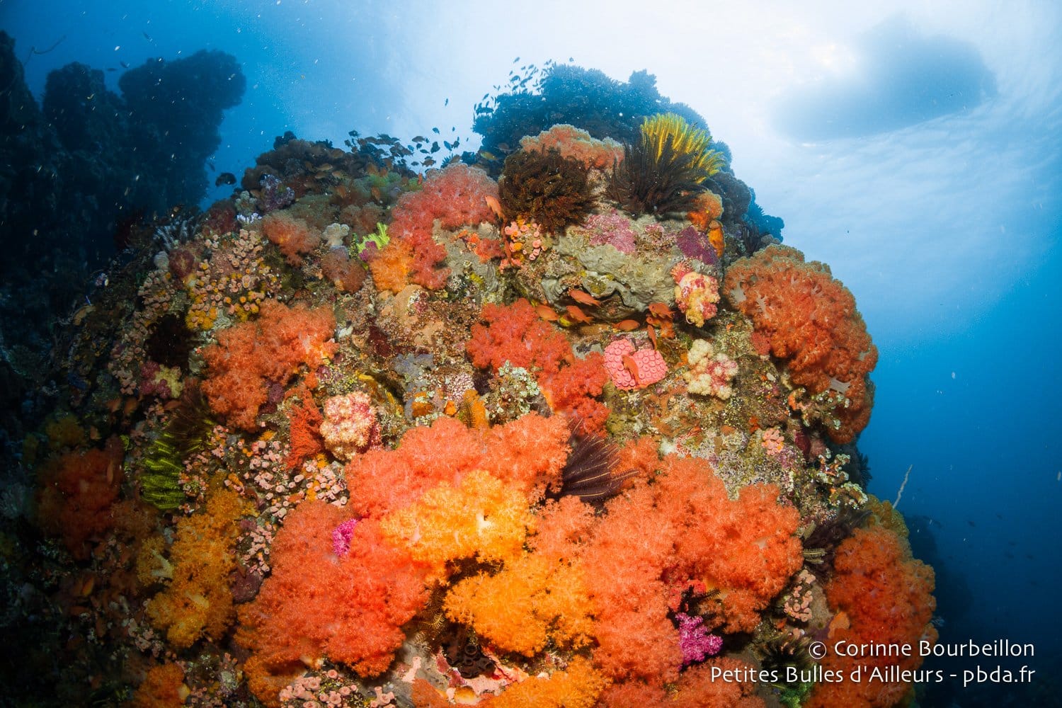 The big rocks form in some places small caves where you can sneak in. There are also beautiful soft corals, on the east side. The place, less exposed, is much more suitable for photography... So I let myself go a little.