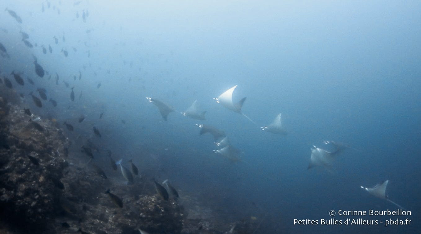 The rays can be very numerous, evolving by tens in graceful formations. The current is sometimes strong, but it is perfectly manageable, given the topography of the bottom. And the show is great!