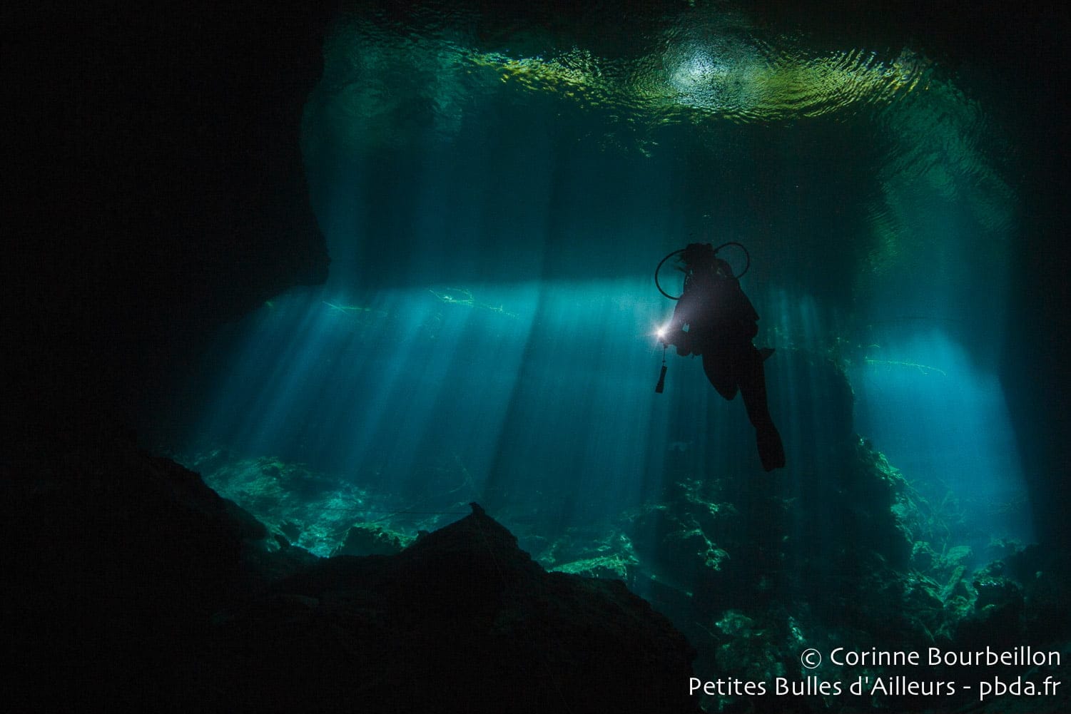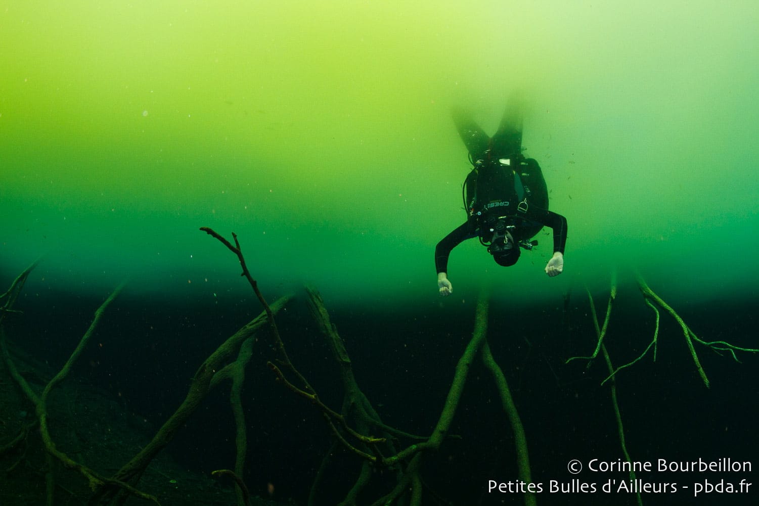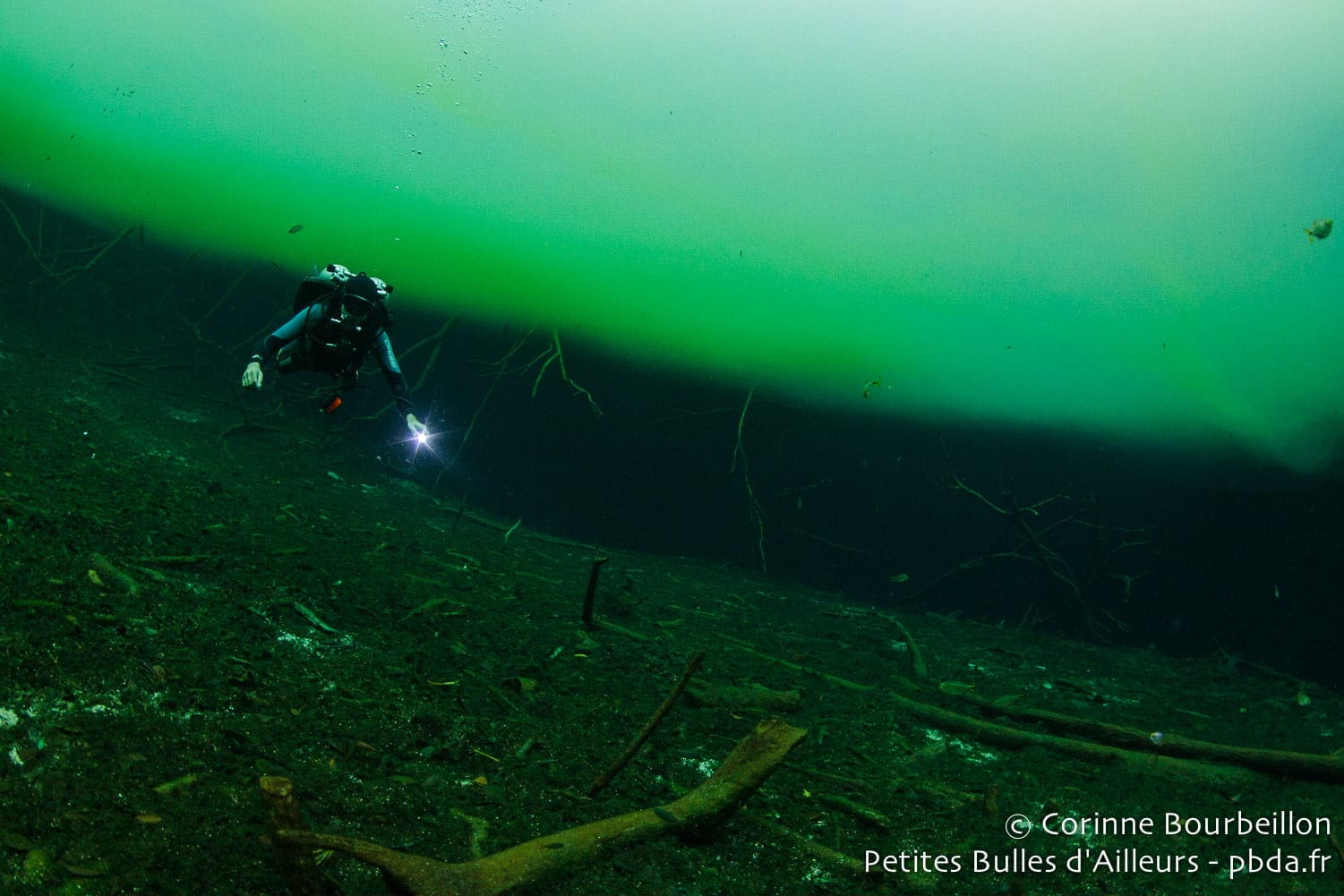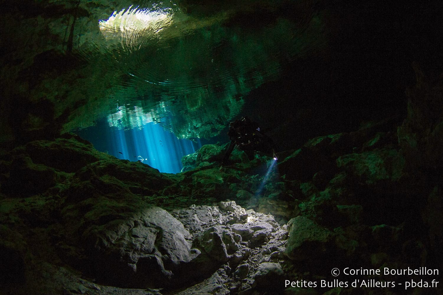 I don't have a picture that can show you that... You look down and up, you feel like you are going in and out of the water. But not at all. We are always immersed. Very disturbing, very disturbing. This is called a "halocline". Fortunately I had been warned about it before diving, because at the time my poor brain could hardly understand what was happening. Especially since the phenomenon in question occurs when we are in a totally underground environment, without any external light. Almost frightening, I admit.