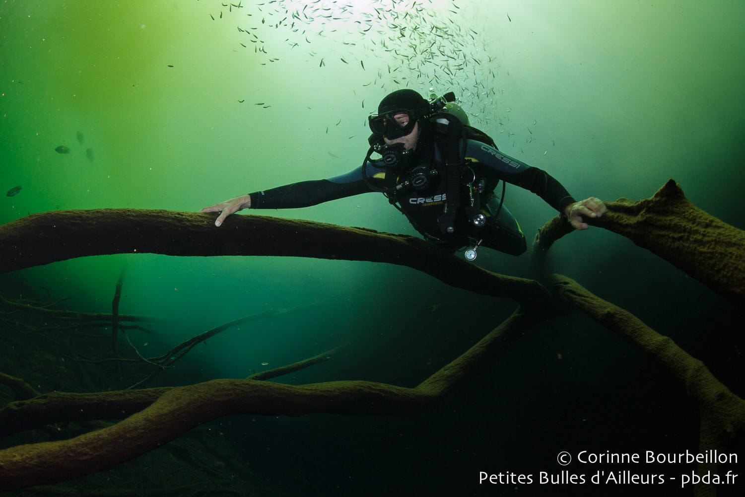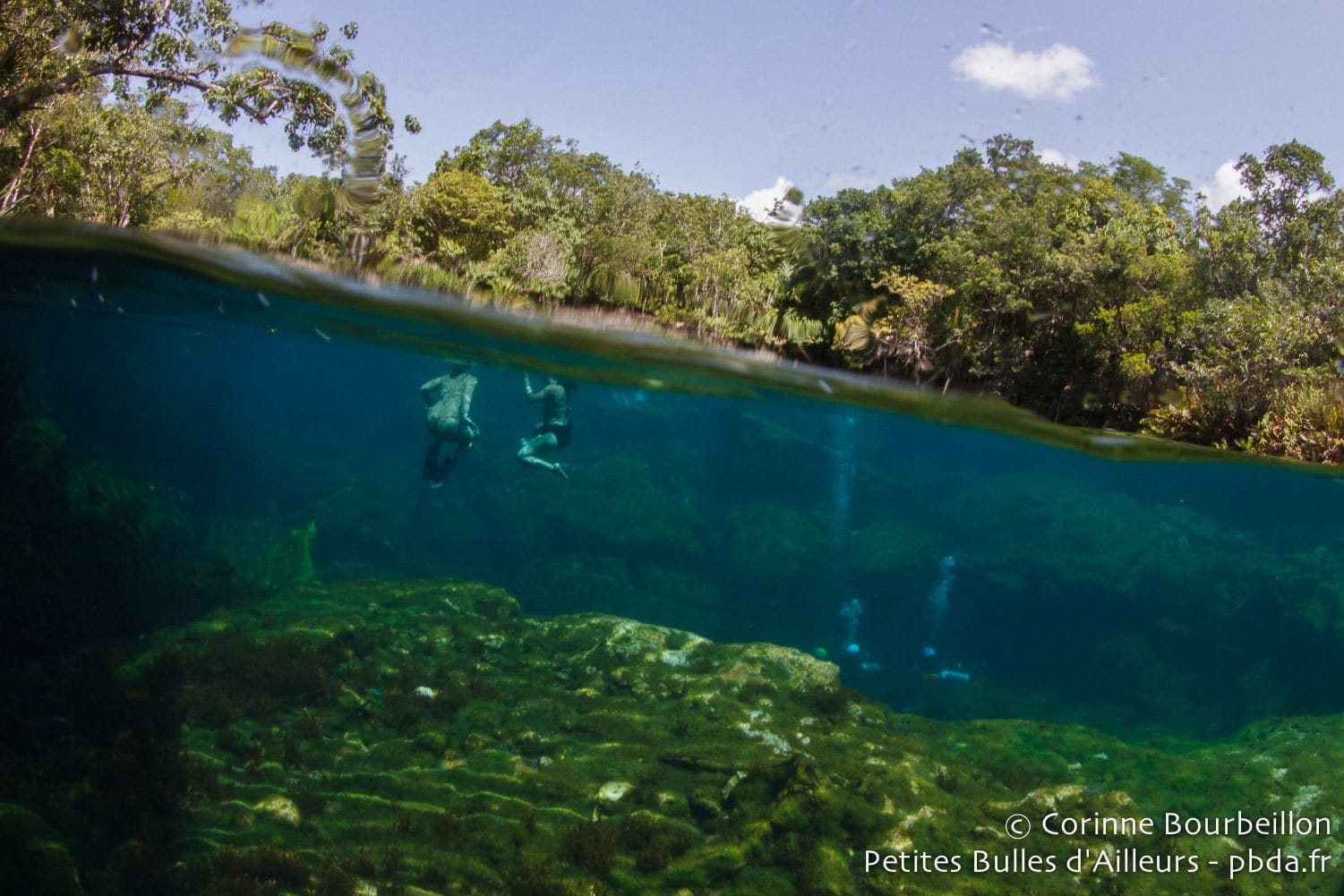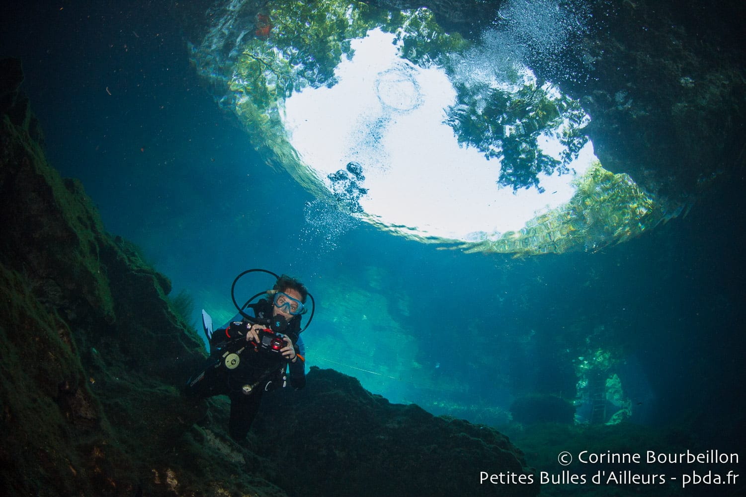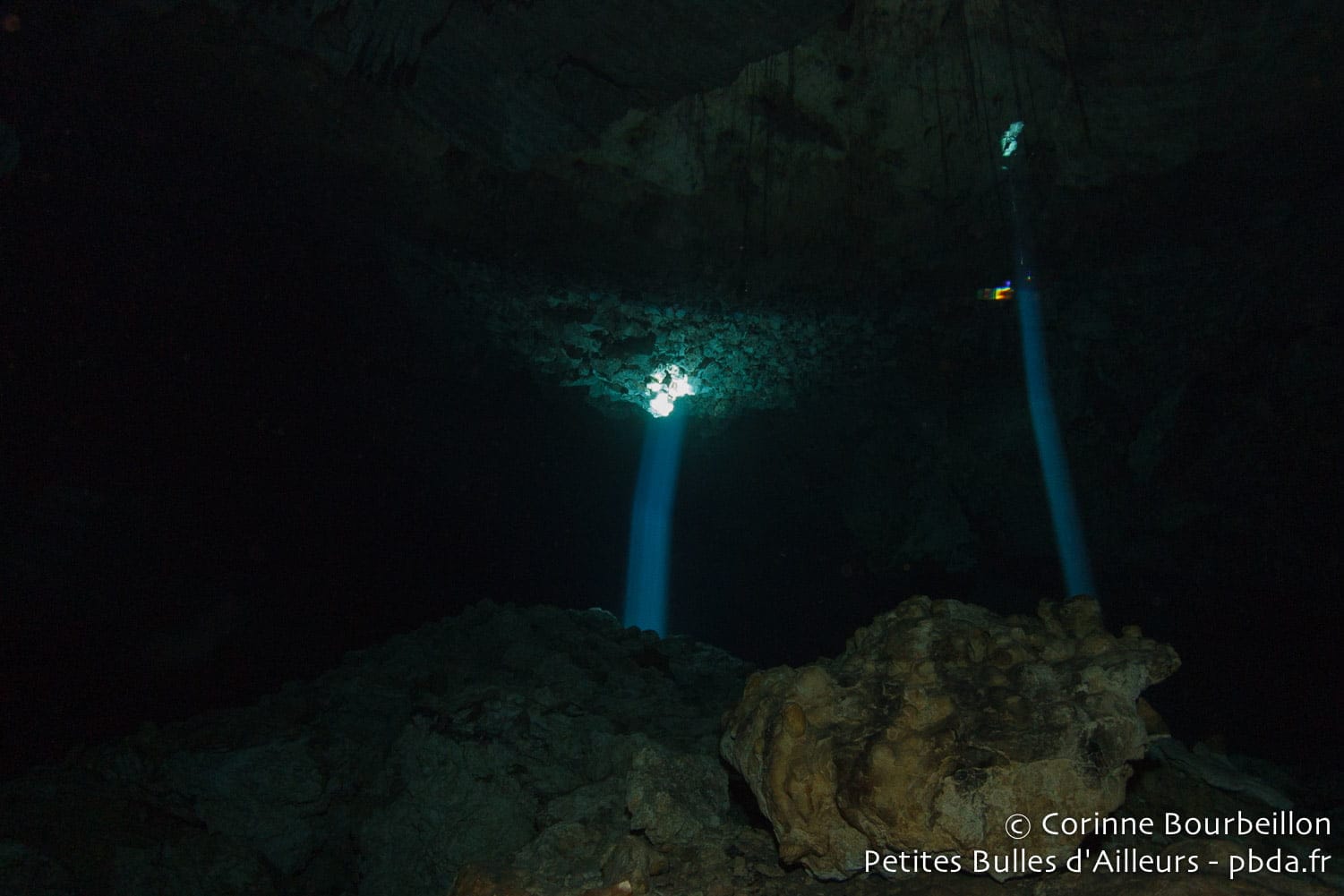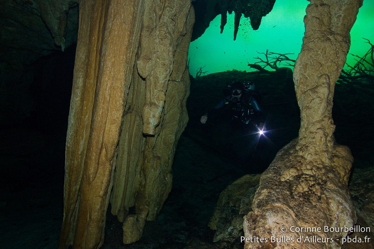 I don't have a picture that can show you that... You look down and up, you feel like you are going in and out of the water. But not at all. We are always immersed. Very disturbing, very disturbing. This is called a "halocline". Fortunately I had been warned about it before diving, because at the time my poor brain could hardly understand what was happening. Especially since the phenomenon in question occurs when we are in a totally underground environment, without any external light. Almost frightening, I admit.