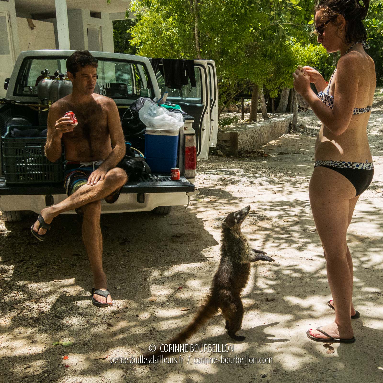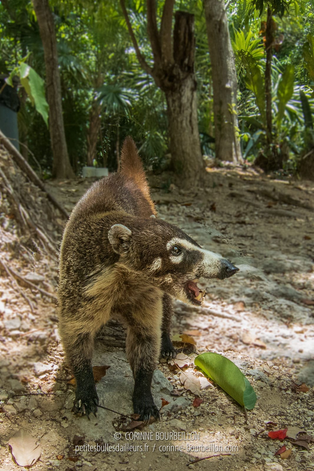 When the cenotes are in the middle of the jungle, you can sometimes see a strange creature emerging from the cover of the trees. Long nose, clawed legs, long bushy tail.