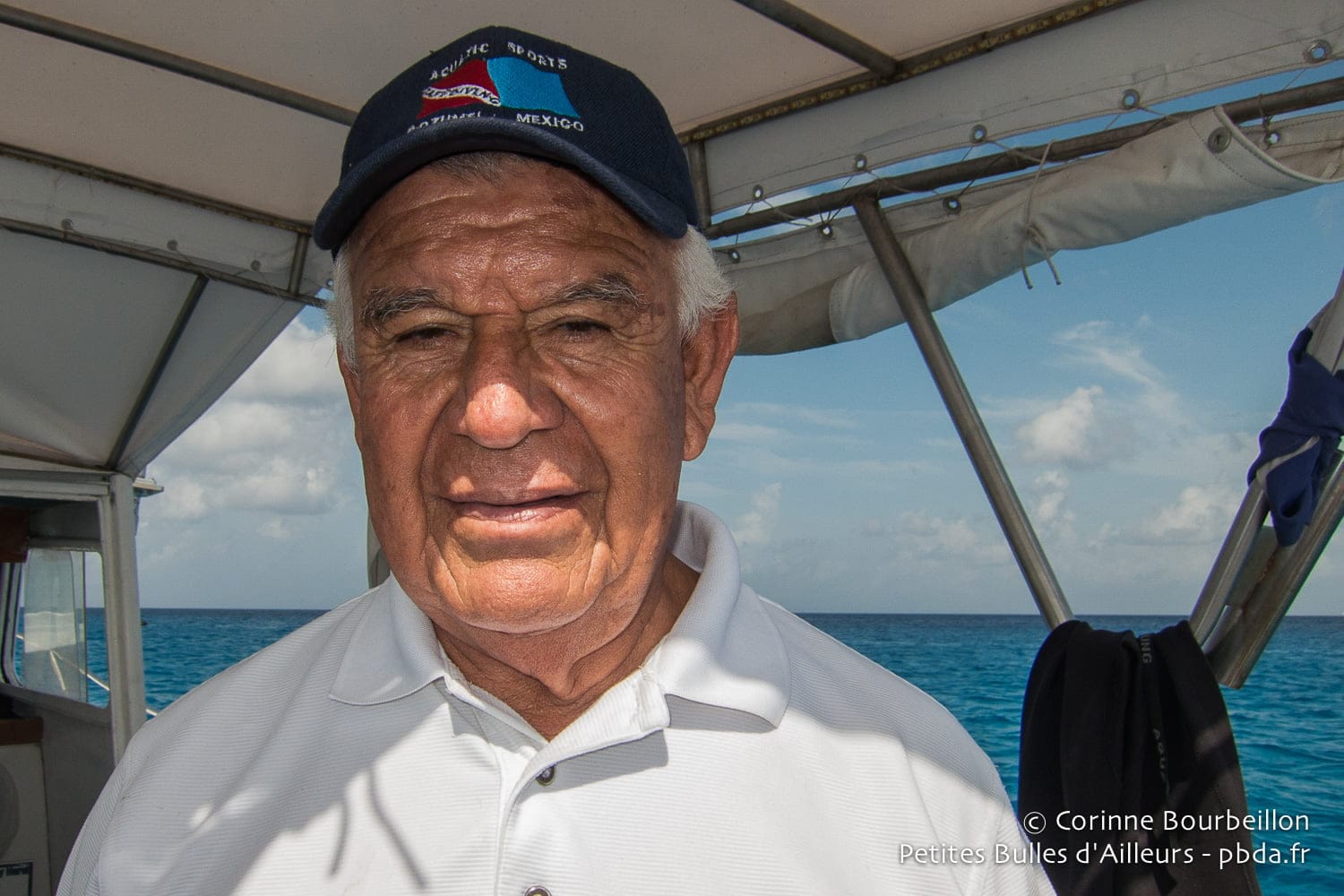 His full name: Sergio Sandoval Vizcaíno. A pioneer of diving in Cozumel, where he has lived since 1979, he celebrated his 74th birthday in early 2015 and is still blowing bubbles underwater!