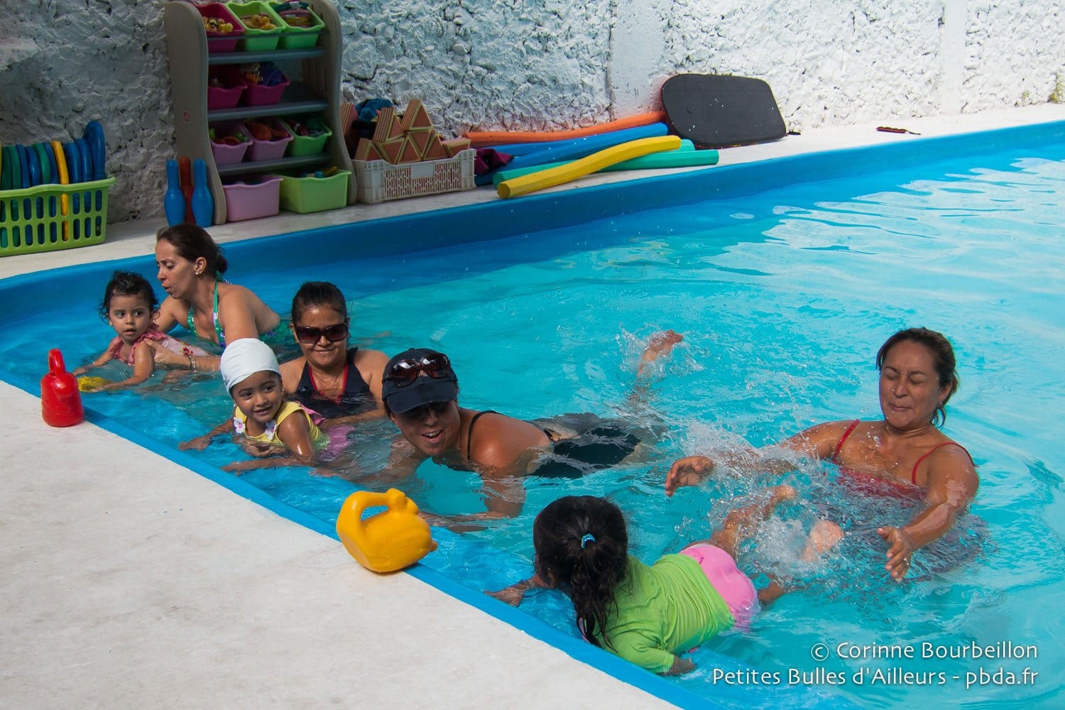 At Sergio's house, a Virgin Mary watches over the pool from her alcove and newspaper clippings, framed and hung on the walls, salute the aquatic exploits of her daughter and granddaughter, both named Beatriz.