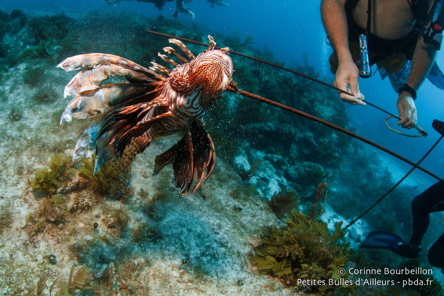 And then, in these waters, the flying scorpion fish is an invader: These fish, originally from Asia, have been introduced into the Mexican waters of the Caribbean Sea, where they have no predators. They are voracious and proliferate at the expense of other species, unbalancing the ecosystem. Diving professionals are allowed to kill them when they see them.