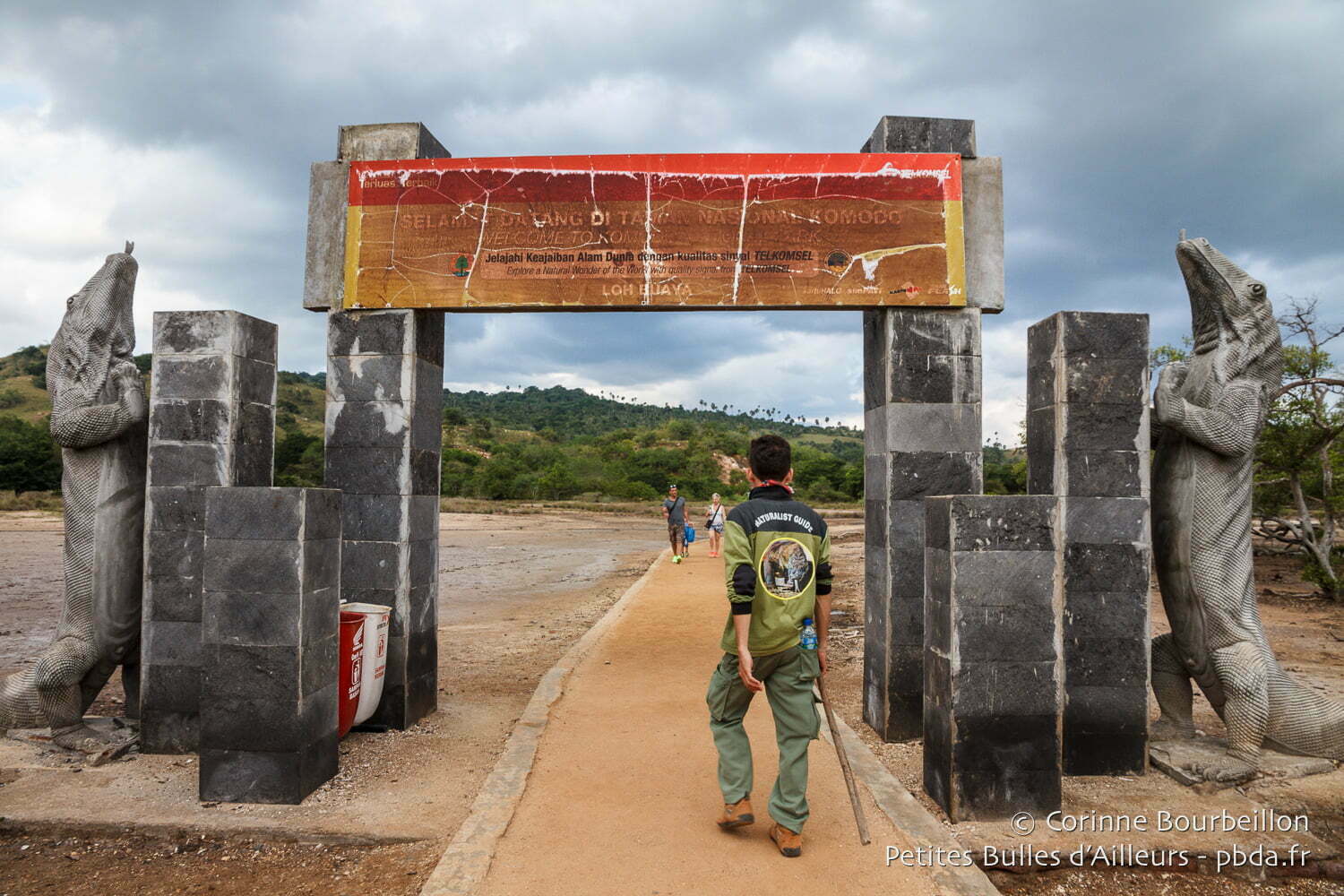 The most famous one, you may know it: it is the Komodo dragonTourists are allowed to disembark on the islands of Rinca and Komodo to observe them, accompanied by rangers now wearing a jacket with the words "Naturalist Guide" on the back.