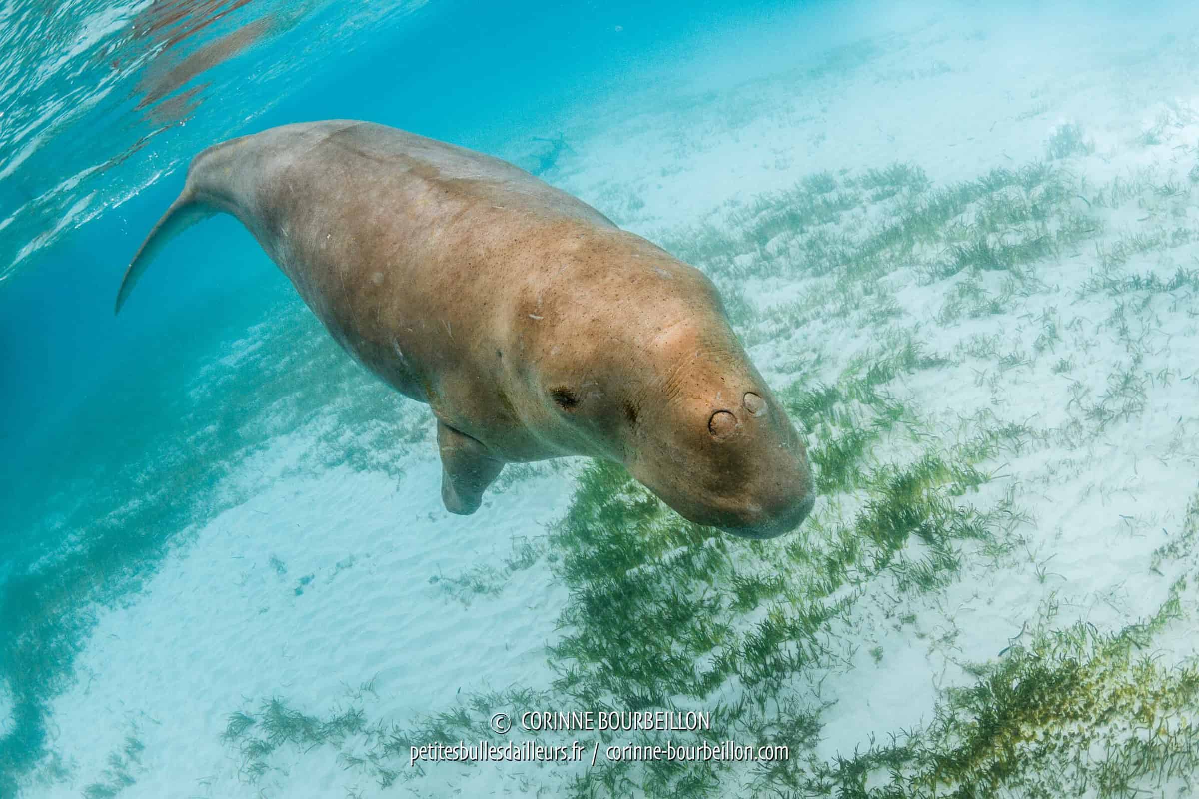 The main occupation of this a priori harmless vegetarian animal consists in grazing like a cow on the underwater grass beds (up to 40kg per day, Steven tells me), in shallow water, along the coasts. And therefore close to humans, who have gradually decimated the dugong populations in the Indian Ocean and the Pacific...
