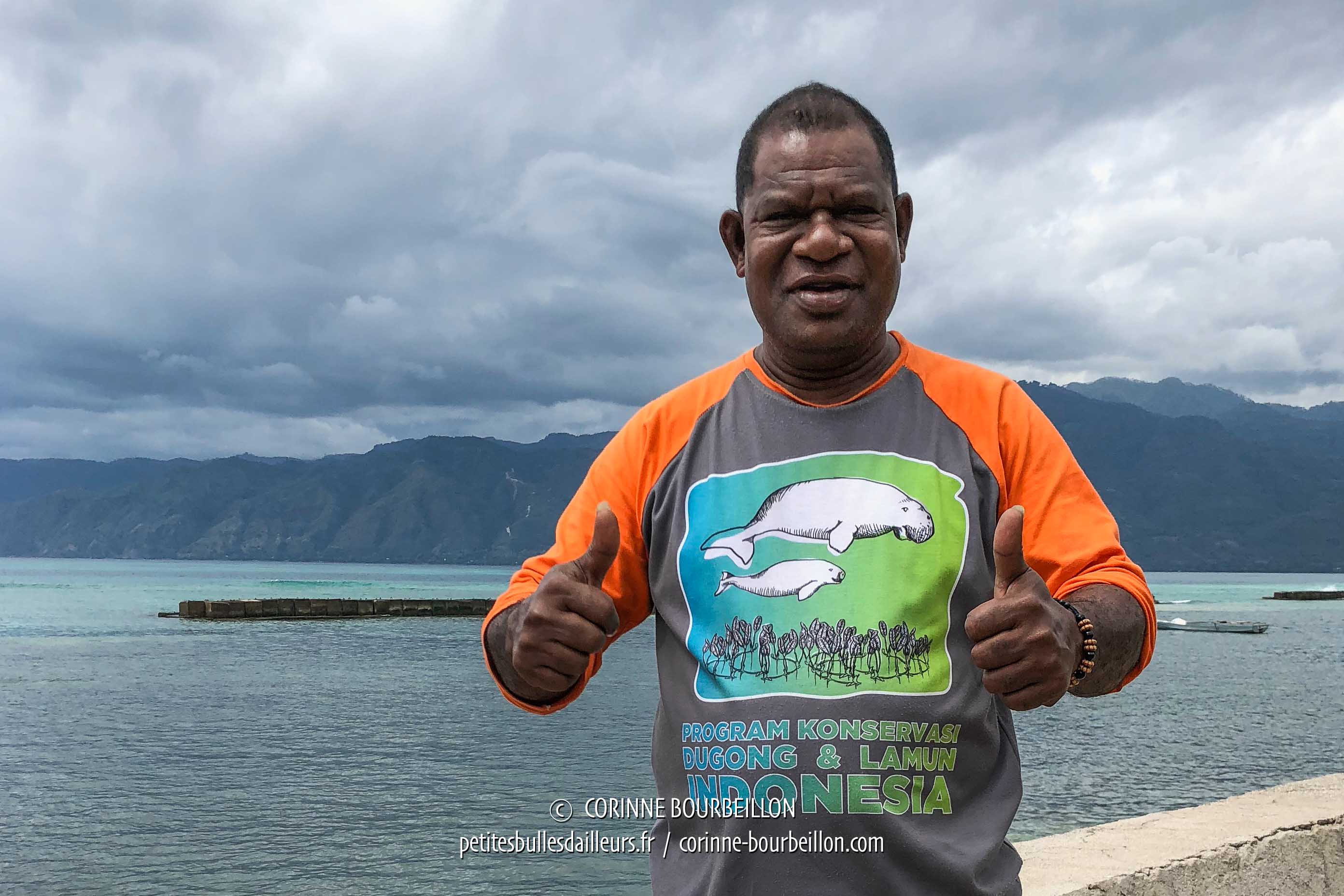 Pak Oneh, the "Mr. Dugong" who organizes the observation trips in the bay (Alor, Indonesia, July 2018)