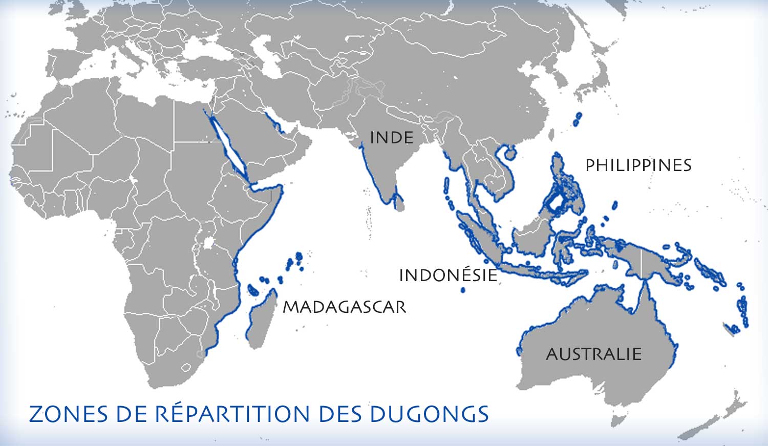 We don't really know how many dugongs there are in the world. I found the map below, which gives an approximate location:
