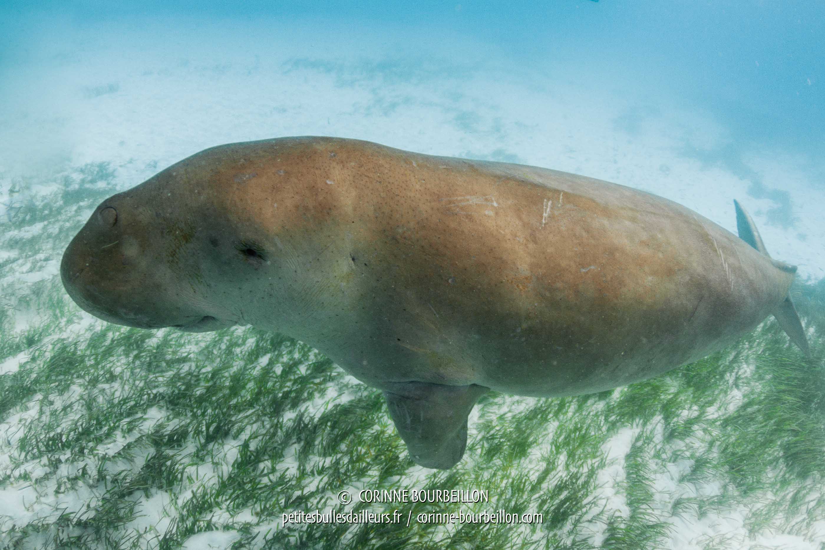 The one I saw and photographed in Alor, a male not shy at all, was almost 3 meters long and must have weighed 300 kg. In short, a not really sexy animal and impossible to confuse with a mermaid. Larger individuals may, it seems, reach 4 meters and 400 kg...