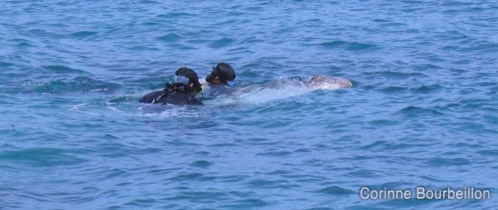Tourist side: four Italians on holiday; Clare, a young Scottish girl spending her dive-master and then me, the French girl who takes pictures underwater.