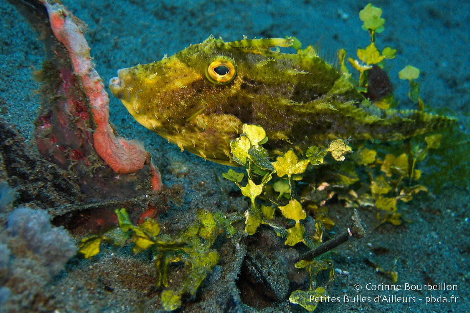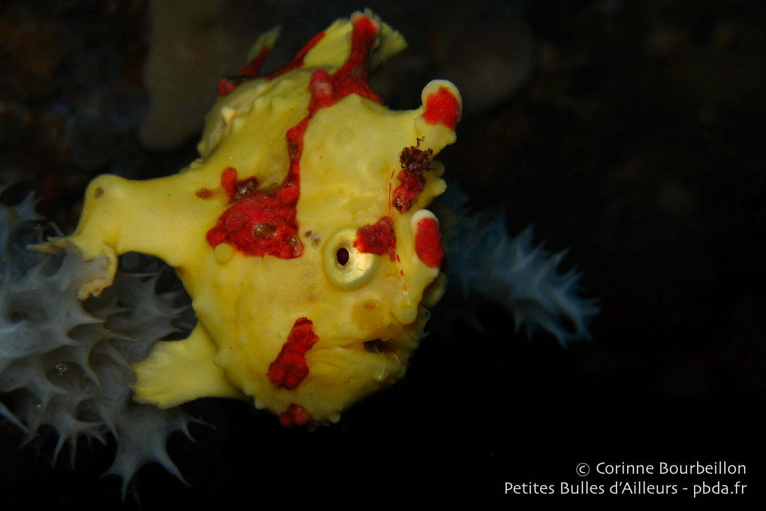 As for the leaf-fish, there were two of them, in fact, wedged between the corals, a small one and a big one, also at Masaplod (very rich, this site). I saw many of them, during my previous dives, on the Sipadan and Sulawesi sides, as well as during this trip to the Philippines. Some pink, some white, some brown. But of this yellow color, I think it is the first time too.
