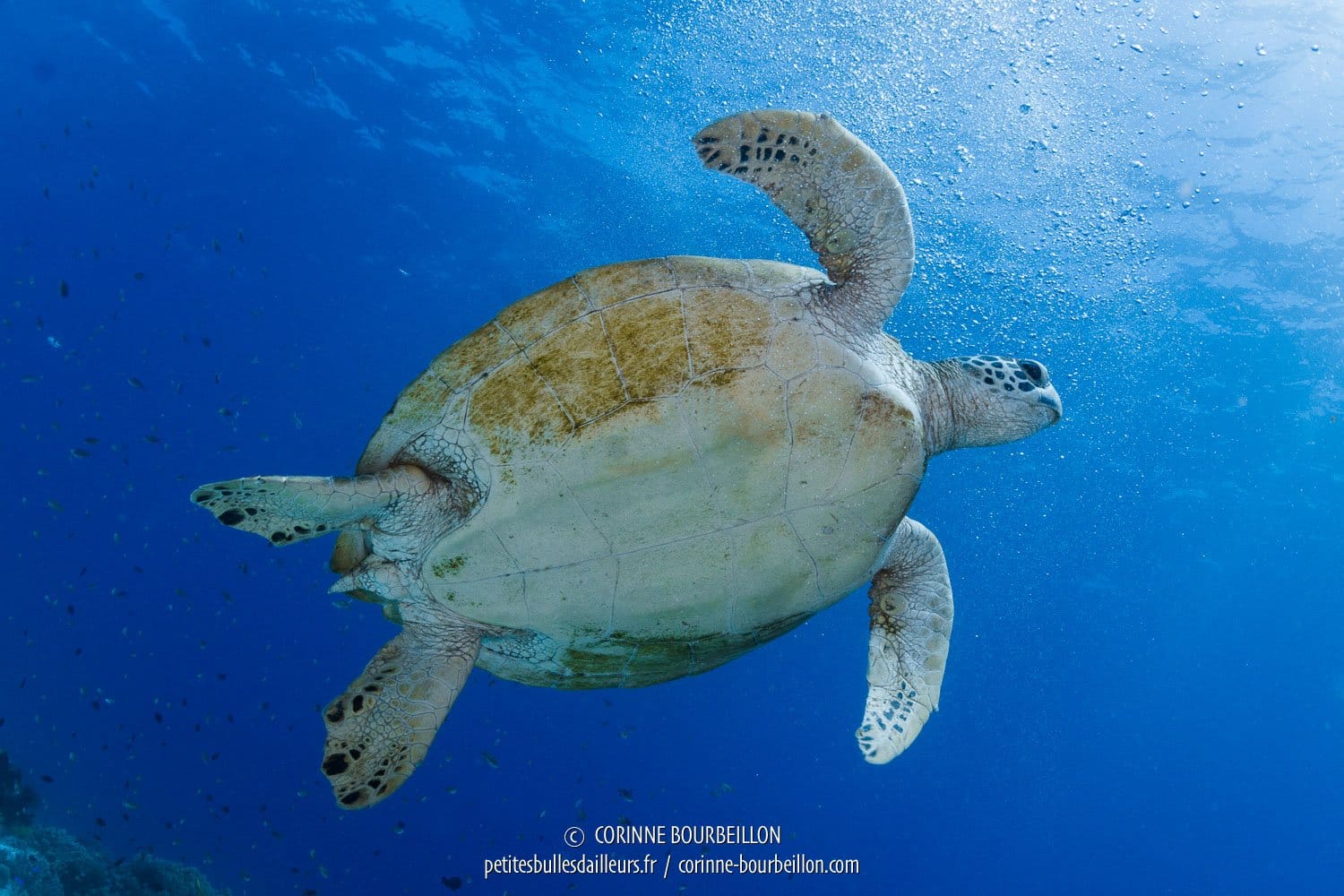 The two divers at the head of our group were the first to take advantage of it. Jerome from the Equation center, who is guiding us, knocks on his tank to alert Steven and me, who are as usual lagging far behind, busy with our cameras. He is very agitated and makes big signs...