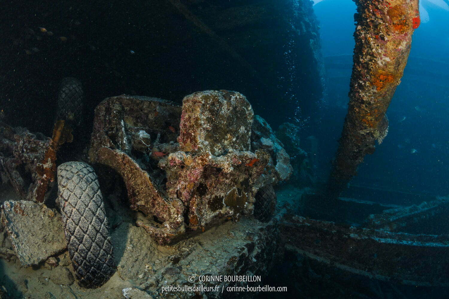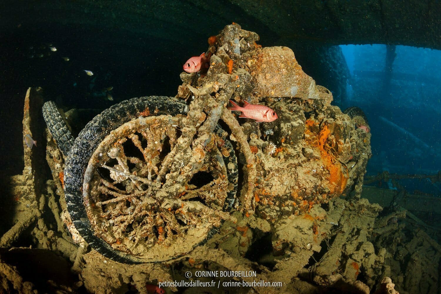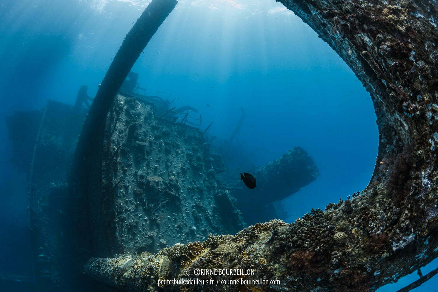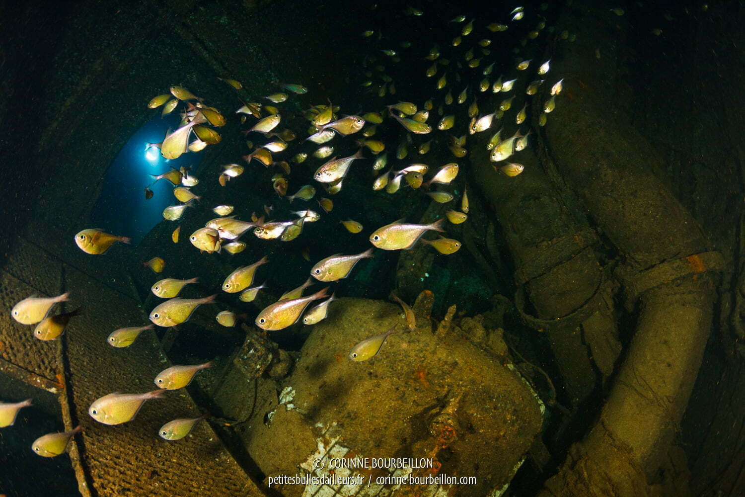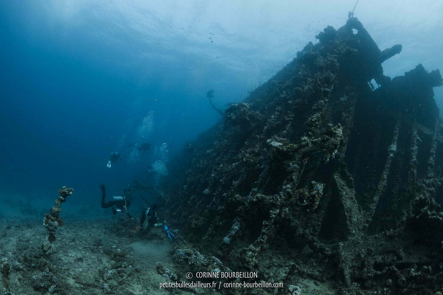 Les photos sont magnifiques! On se croirait dans un autre monde!… Et les véhicules rouillés sont impressionnants! Les bancs de poissons tournoyants autour de vous sont magiques… 😉 Merci Corinne!