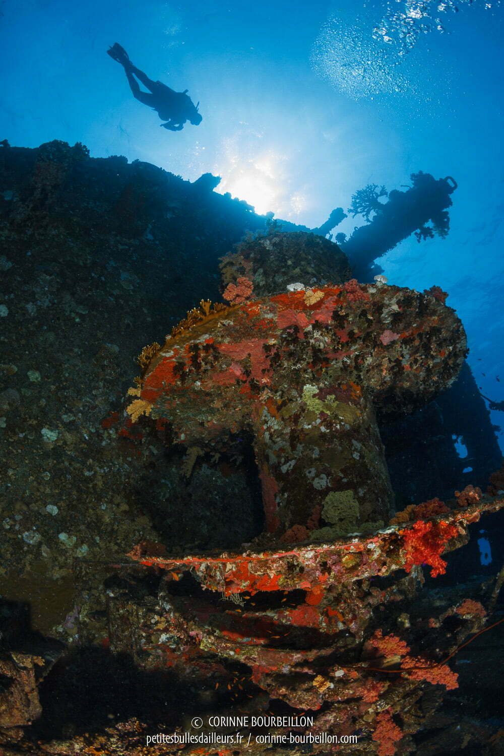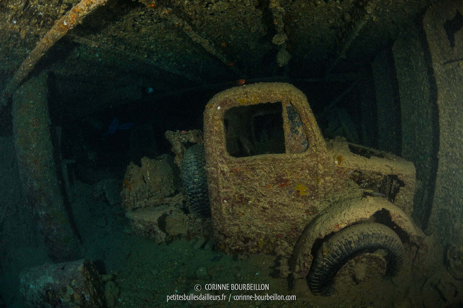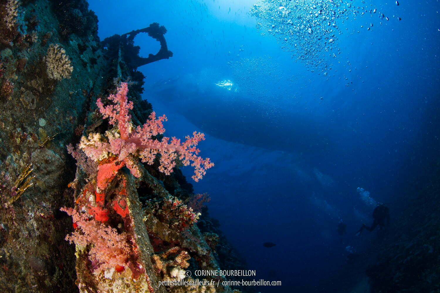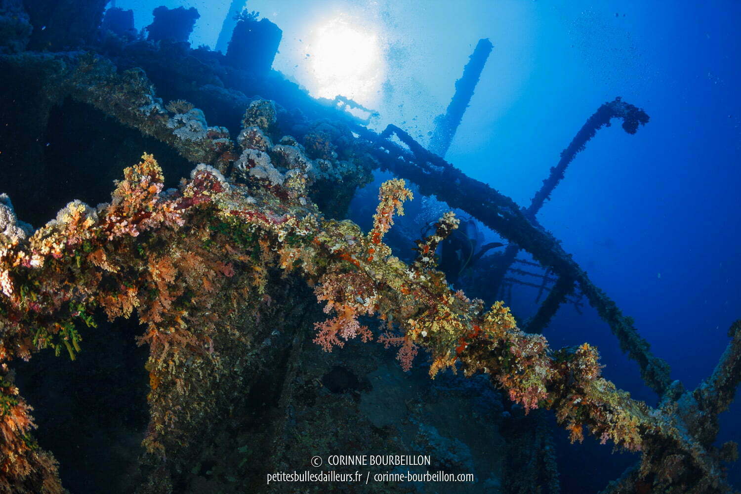 Les photos sont magnifiques! On se croirait dans un autre monde!… Et les véhicules rouillés sont impressionnants! Les bancs de poissons tournoyants autour de vous sont magiques… 😉 Merci Corinne!