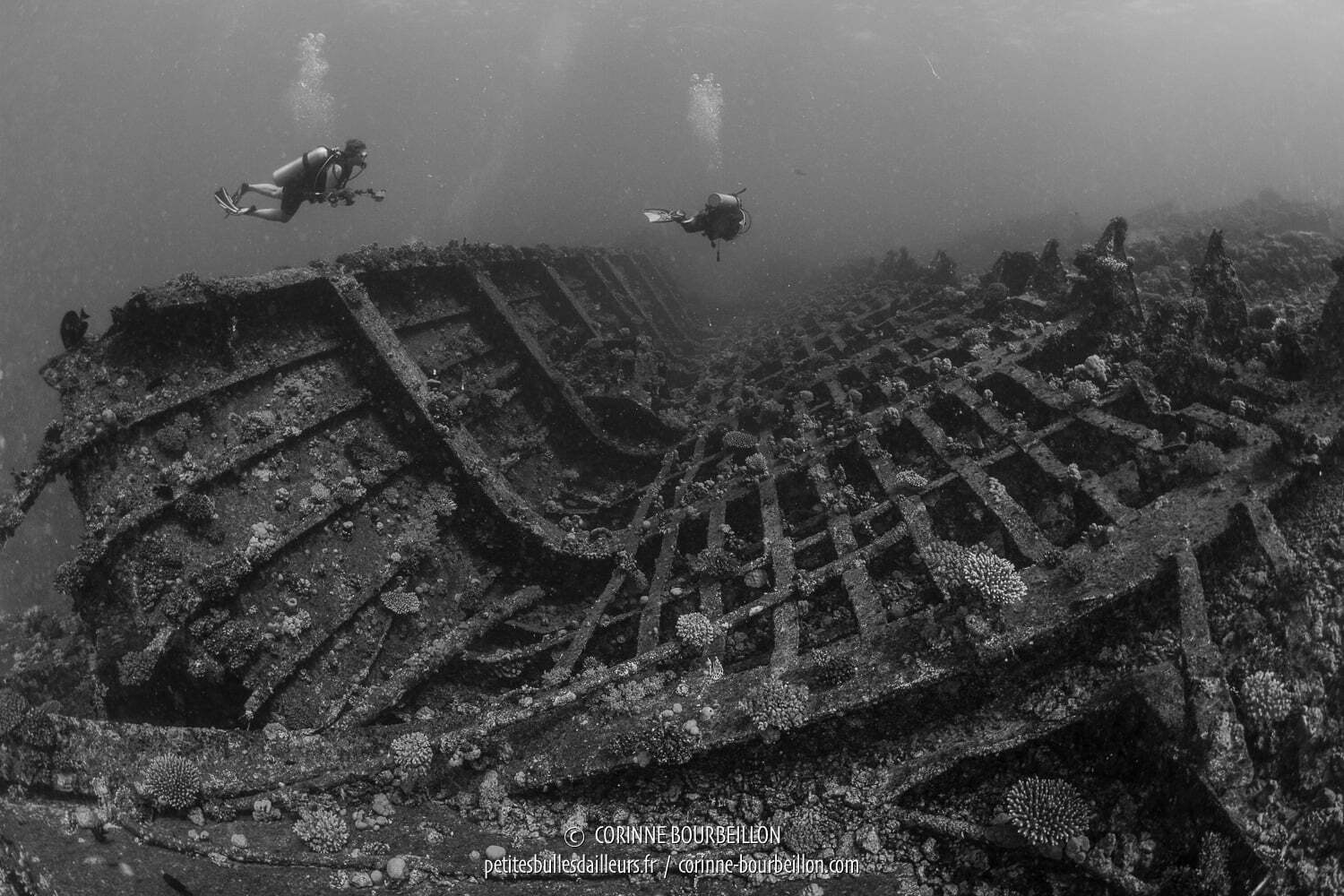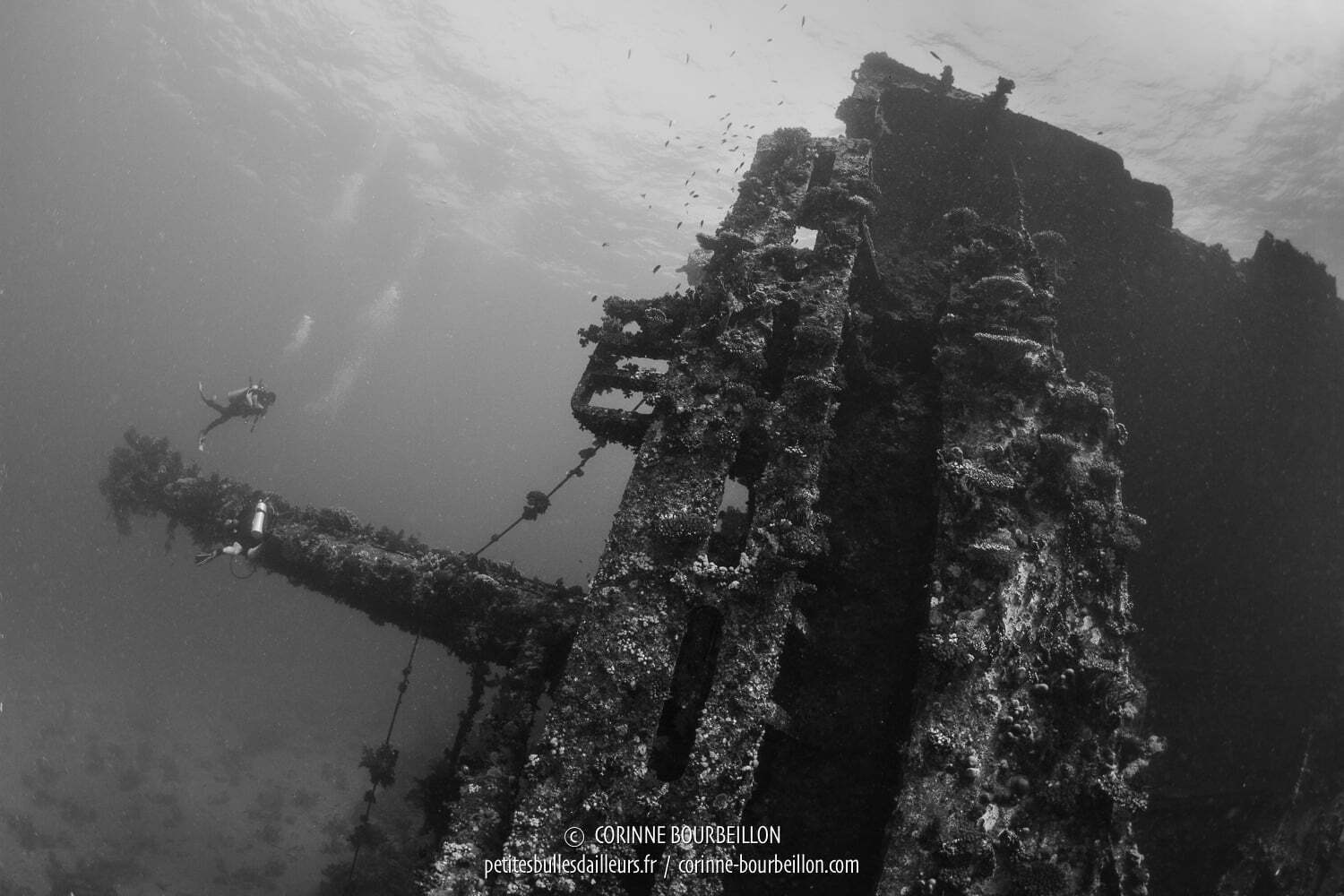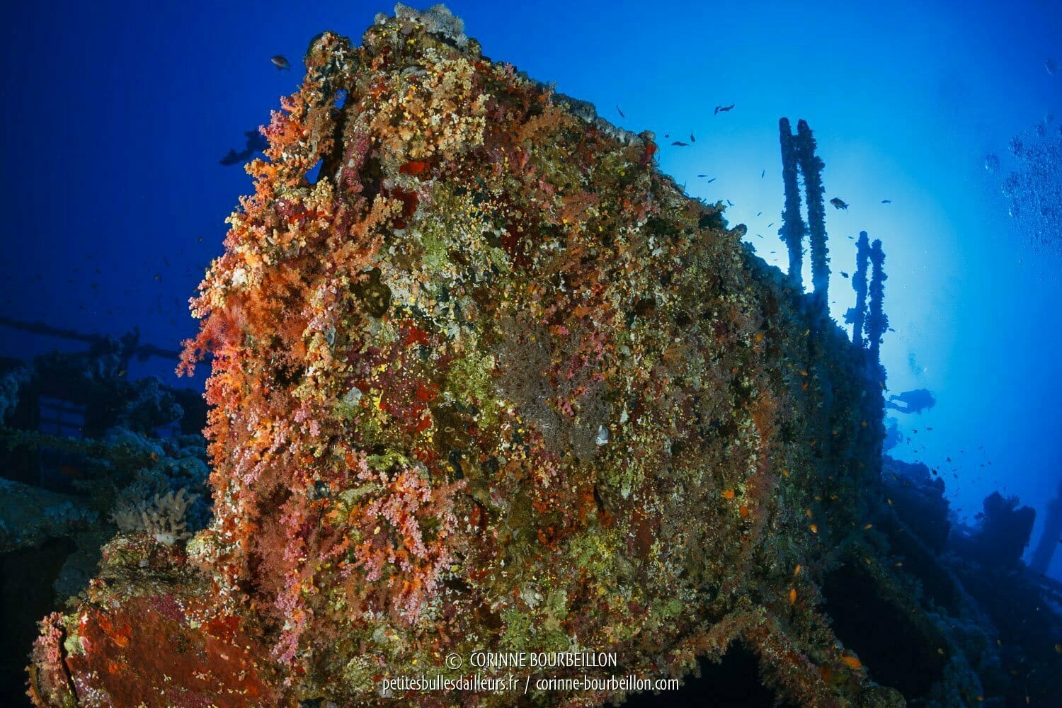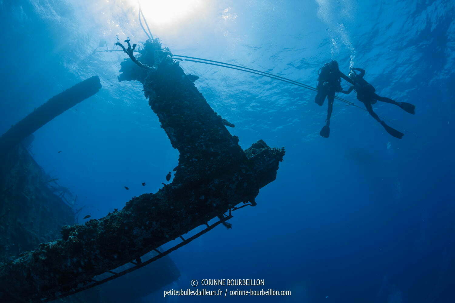Les photos sont magnifiques! On se croirait dans un autre monde!… Et les véhicules rouillés sont impressionnants! Les bancs de poissons tournoyants autour de vous sont magiques… 😉 Merci Corinne!