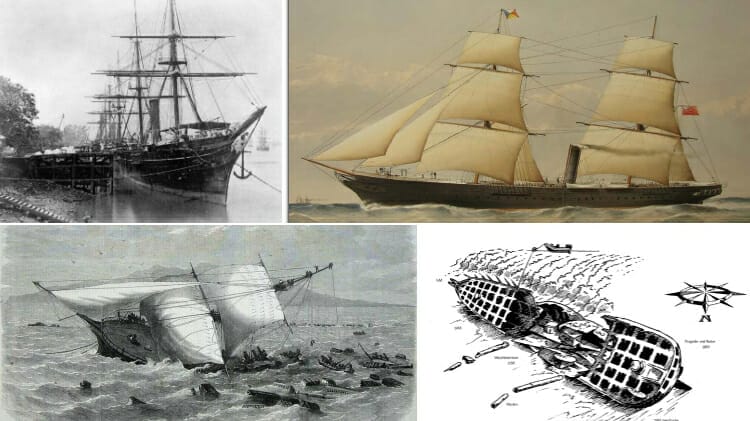 Type de navire : navire britannique de transport mixte (marchandises et passagers), à la fois à vapeur et à voile. Longueur : 90 m. Construction : 1862, à Cubitt Town, près de Londres. Il a été armé en 1863 par la compagnie Peninsular & Oriental Steam Navigation. Naufrage : 13 septembre 1869. Parti de Suez (le canal de Suez ne sera inauguré que le mois suivant), il faisait route vers Bombay, aux Indes, avec une cargaison et à son bord 230 passagers et membres d’équipage. Lui aussi s’est encastré sur le récif… (Il est juste à côté du Giannis D et il y a deux autres épaves à proximité à Abu Nuhas, c’est dire si l’endroit est dangereux pour la navigation.) Profondeur : 27 m au fond, 17 m sur la partie la plus haute.