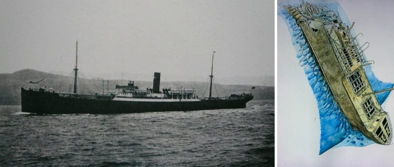 Type de navire : cargo britannique. Longueur : 137 m. Construction : 1901, à Glasgow, en Écosse, pour la compagnie maritime Anchor Line. Naufrage : dans la nuit du 19 au 20 juillet 1901, sur le récif de l’île de Big Brother, pourtant signalée par un phare, lors de son voyage inaugural entre Liverpool et Calcutta, aux Indes. Il transportait du matériel ferroviaire. Profondeur : 15 m pour les débris de la partie avant les plus proches de la surface et jusqu’à 80 m pour la poupe, inaccessible en plongée loisir.