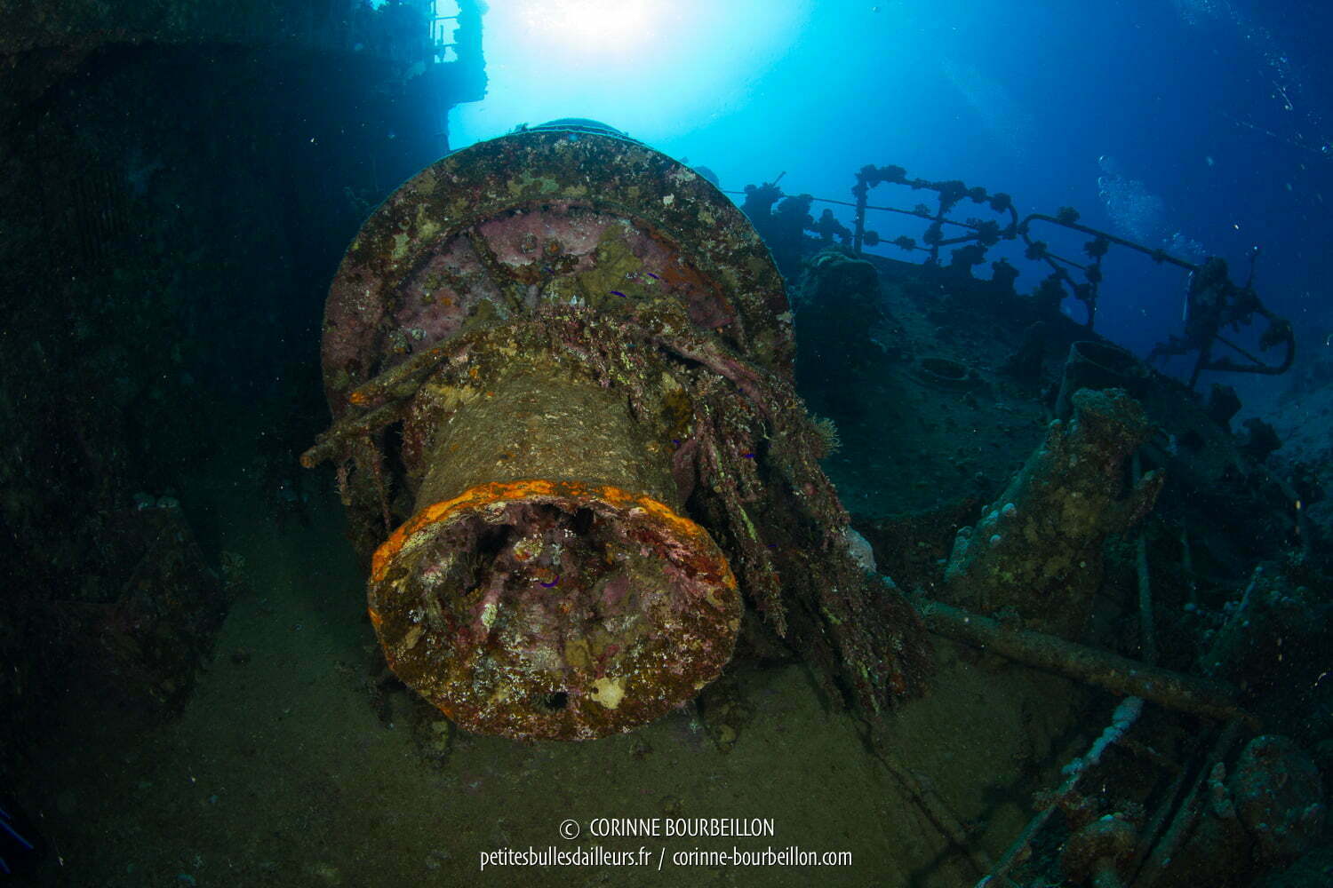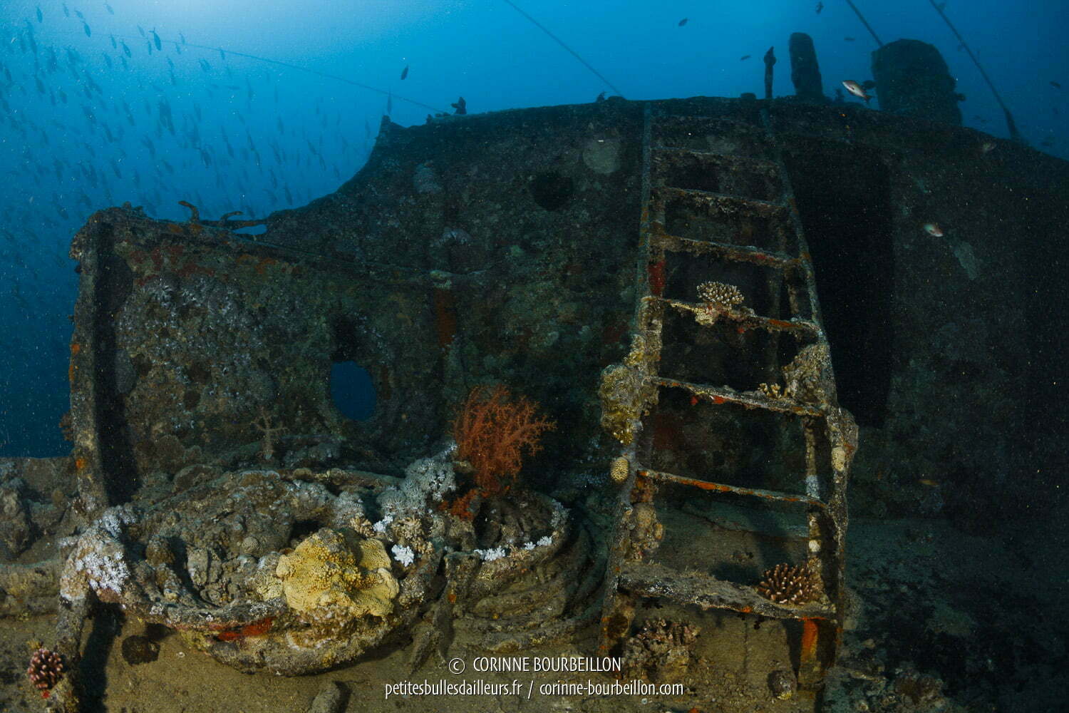 Des quatre, c’est sans doute mon épave préférée ! C’est Jacques-Yves Cousteau qui, le premier, a découvert et exploré le Thistlegorm, dans les années 1950. C’est aujourd’hui l’épave la plus fameuse de la mer Rouge. On peut y pénétrer et explorer les cales, qui sont un véritable musée sous-marin de la Seconde Guerre mondiale…