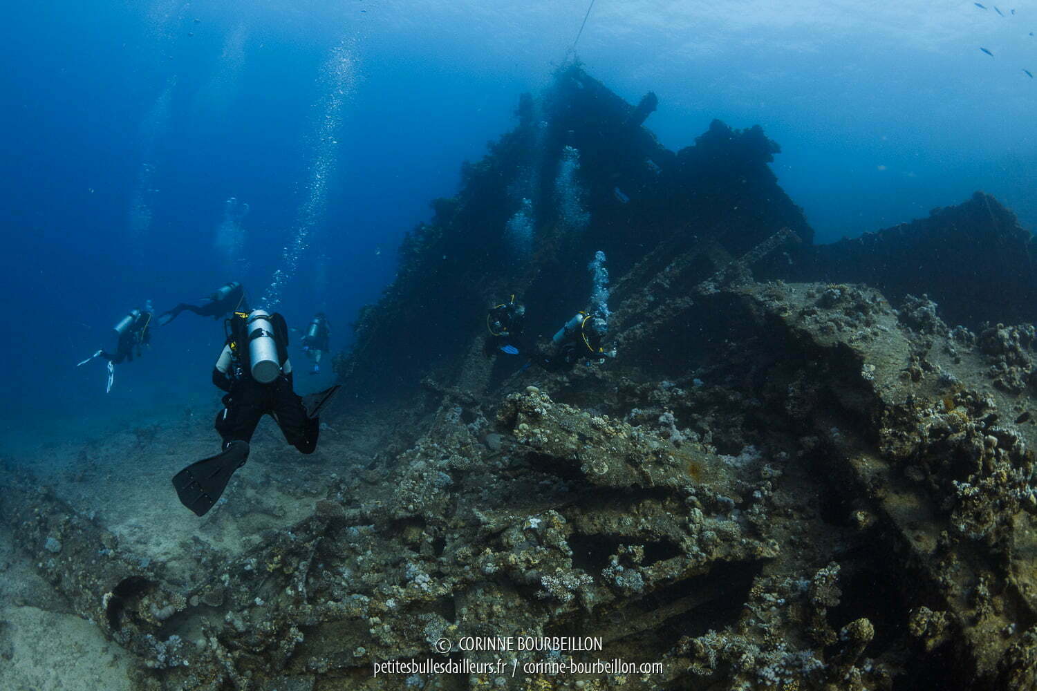 Comment ? J’ai découvert ces épaves en croisière-plongée en octobre 2016, à bord de l’Exocet. J’ai beaucoup apprécié l’organisation, le confort et l’ambiance sur ce bateau. La croisière mêlait plongeurs photographes et apnéistes. Ces quatre épaves sont des « classiques », au programme de la plupart des croisières-plongée organisées en mer Rouge. Certaines peuvent aussi se faire en excursion à la journée, comme le Thistlegorm, depuis Hurghada ou Charm-el-Cheikh.