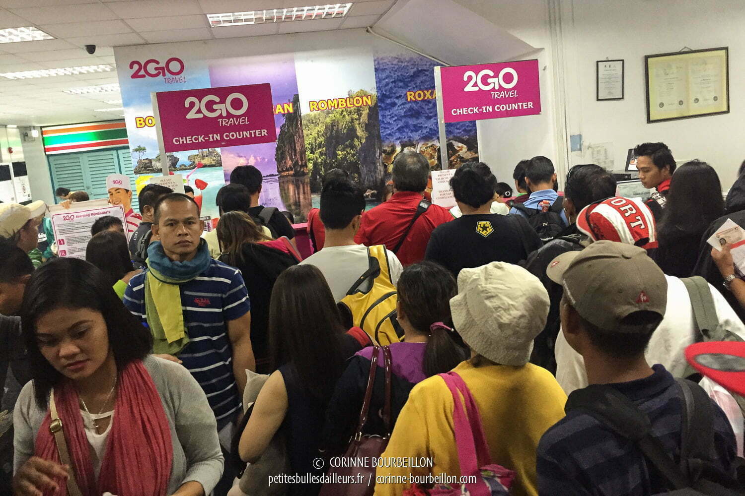 Pour la queue, le ticket de quai et l’enregistrement, c’est tout comme le chauffeur a dit. Sans surprise et sans souci. Les Philippins sont extrêmement disciplinés quand il s’agit de faire des files devant un guichet et le check-in est bien organisé. Malgré l’affluence, ça avance vite et je peux donc rapidement passer sur le quai pour embarquer.