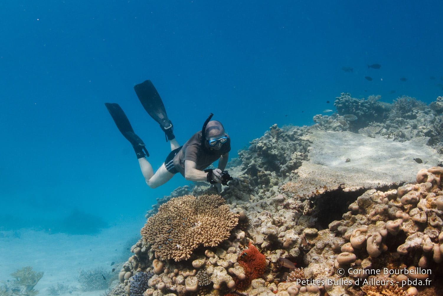 L’idée, c’est de pouvoir déjà aller voir de plus près poissons et coraux, quand je fais du snorkeling (palmes-masque-tuba). Et puis, peut-être, un jour, de pouvoir approcher (et photographier, et filmer) dauphins, requins, raies mantas et autres bestioles sympathiques, sans les effrayer par un panache de bulles bruyantes !