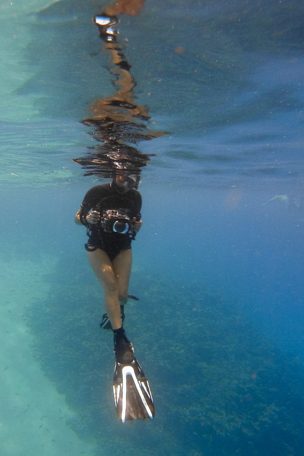 Lors de nos pauses snorkeling, j’étais un peu envieuse de les voir s’immerger et descendre sous la surface, sans effort apparent…