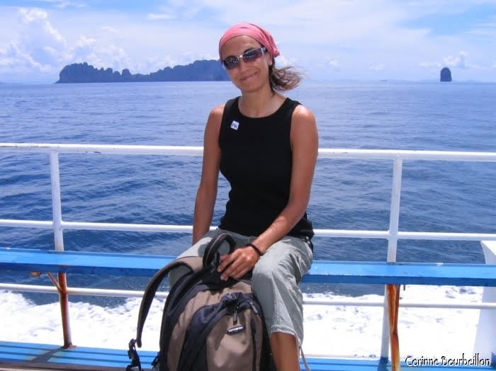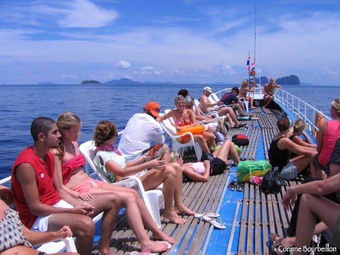Deux heures et demie de traversée en ferry jusqu’à Hat Yao Pier, l’embarcadère de Trang, puis près de cinq heures de route en minibus… Je suis arrivée claquée.