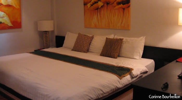 Là où j’étais avant c’était propre aussi (c’est le minimum que j’exige, même dans les endroits très simples), mais un vrai lit immense, avec des vrais draps blancs, et une vraie mini-couette toute fraîche, et une vraie déco un peu soignée, et un minibar, et un jacuzzi, et une douche puissante et chaude, c’est trèèèèèès agréable quand on a passé trois semaines à la routarde…