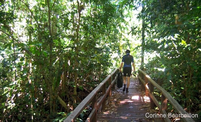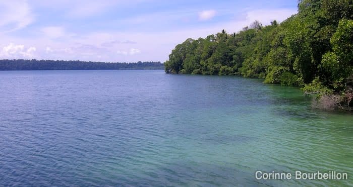 L’endroit a sûrement été aménagé depuis. Il y a désormais une longue passerelle en bois qui traverse le petit bout de jungle et de mangrove séparant la mer du lac. En cinq minutes, on y est !