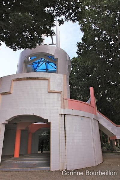 Autour : plaques commémoratives et graffitis, parking et buvette. Quelques singes farfouillent dans les poubelles et des tas de gens se prennent les uns les autres en photo…