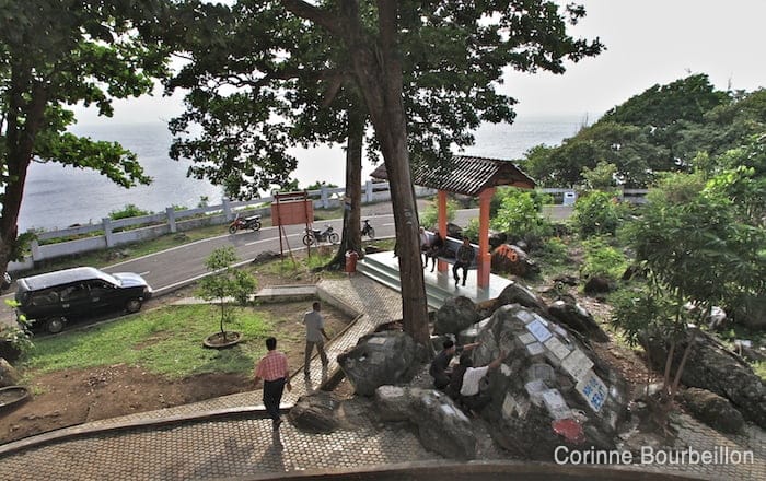 Il y a là une falaise battue par le vent et les flots, où se rencontrent Océan Indien à l’ouest et Mer d’Andaman à l’est. Un vilain monument officiel en béton carrelé marque le lieu.